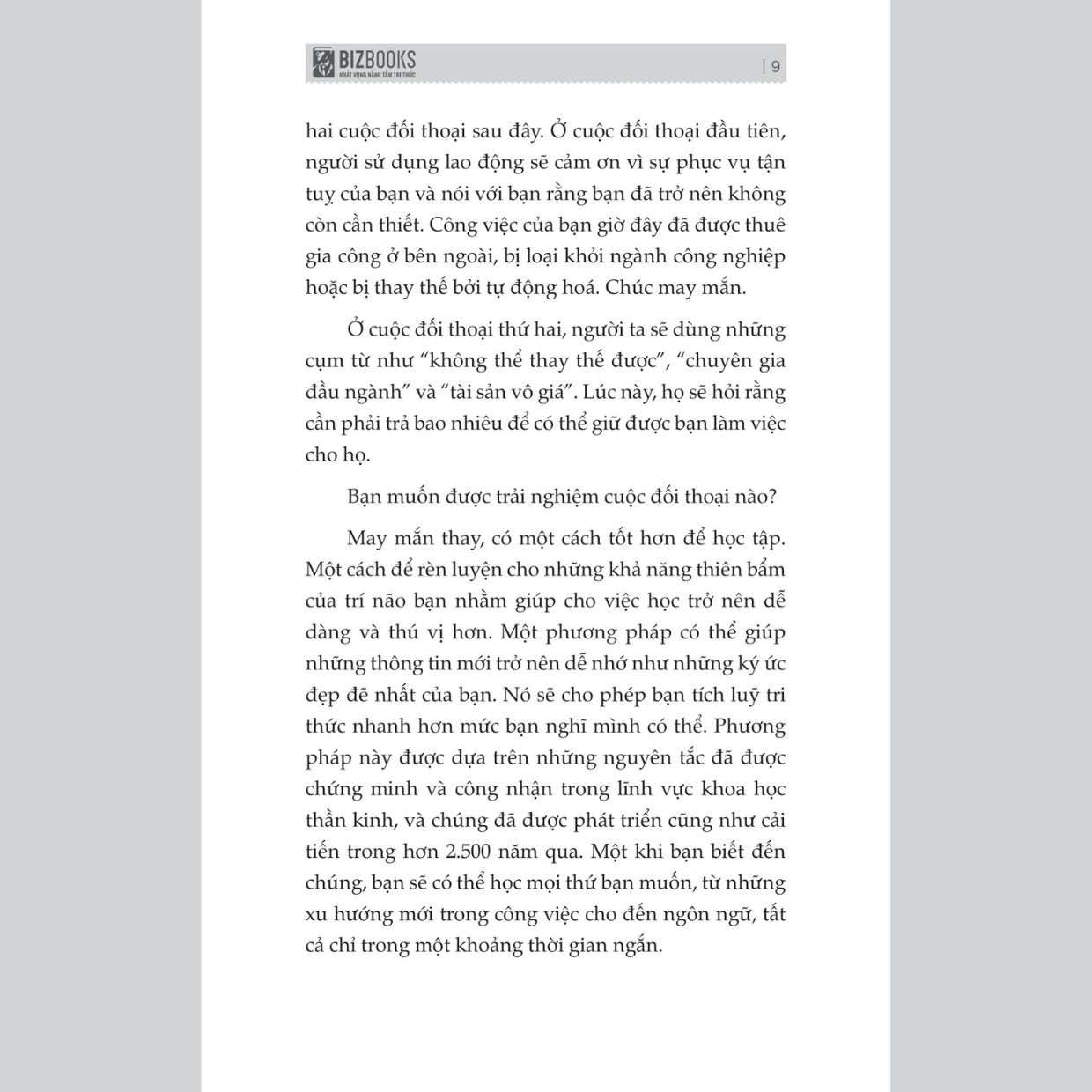 Trong cuốn sách này, Jonathan Levi tiết lộ một cách tiếp cận mạnh mẽ, dựa trên khoa học thần kinh để đọc nhanh hơn, ghi nhớ nhiều hơn và học tập hiệu quả hơn. Bạn sẽ nắm vững các kỹ thuật cổ xưa đang được sử dụng bởi những người nắm giữ kỷ lục thế giới và các vận động viên thi đấu trí nhớ, để mở khóa khả năng đáng kinh ngạc của bộ não con người. Bạn sẽ học cách tăng gấp đôi hoặc gấp ba tốc độ đọc, tăng cường sự tập trung và tối ưu hóa hiệu suất nhận thức của mình. Quan trọng nhất, bạn sẽ được trao quyền để tự tin tiếp cận bất kỳ chủ đề nào - từ kỹ năng kỹ thuật, đến tên và khuôn mặt, đến ngoại ngữ và thậm chí cả bài phát biểu dài - và học nó một cách dễ dàng.