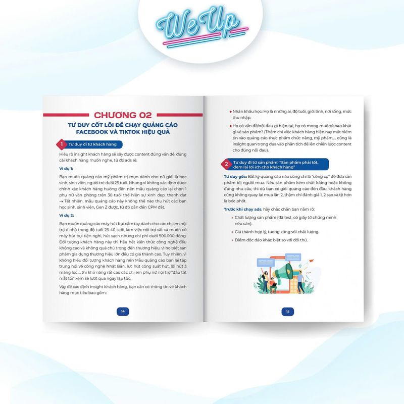 Cuốn sách này sẽ hướng dẫn từ A đến Z: Chọn nền tảng – Viết nội dung – Làm hình/video – Setup chiến dịch – Đọc & sửa chỉ số.