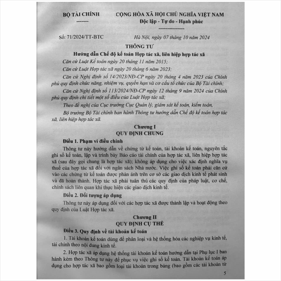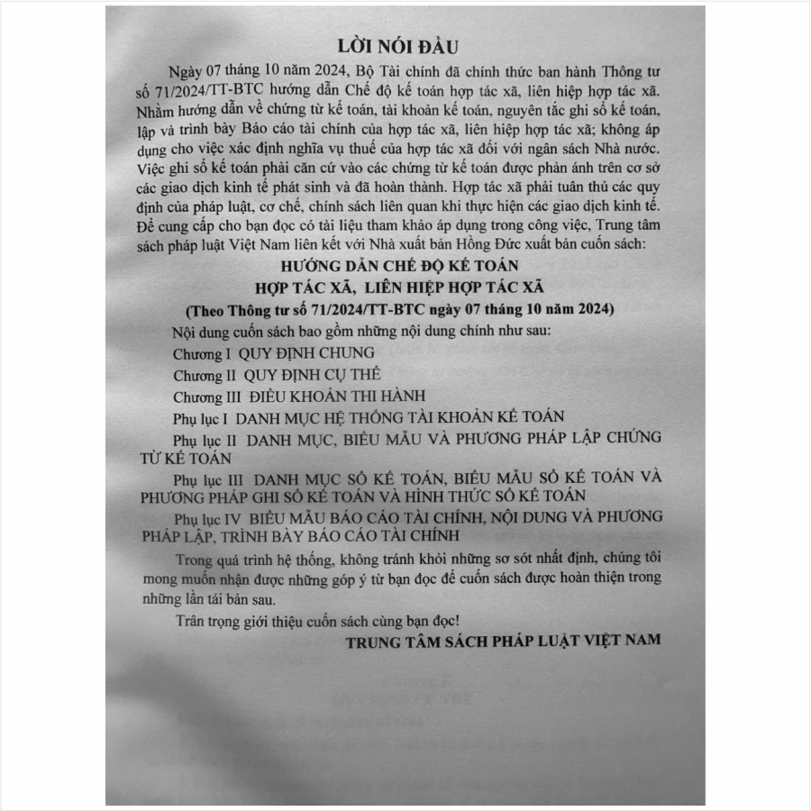 ✨Sách Hướng Dẫn Chế Độ Kế Toán Hợp Tác Xã, Liên Hiệp Hợp Tác Xã theo Thông Tư số 71/2024/TT-BTC (V2522T)