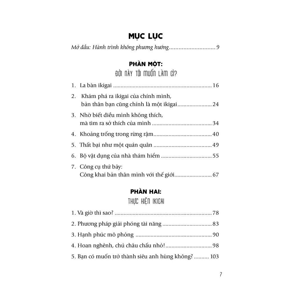 Cuốn sách này chỉ là điểm khởi đầu. Hãy nghĩ rằng nó là hộp dụng cụ chứa những công cụ giúp bạn nhỏ định hình tư tưởng và lên kế hoạch để tìm ra nguyên nhân khiến bản thân bạn hiện hữu trong cuộc đời này, từ đó xây dựng nên bản thân, chứ không đơn thuần chỉ là khám phá bản thân. Hãy tận dụng những điều bạn đọc được từ cuốn sách để thám hiểm, khám phá, và để sống theo cách ikigai!