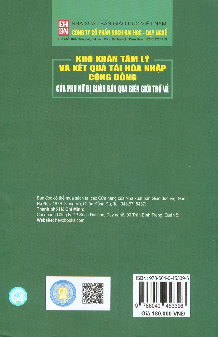 ✨Sách - Khó khăn tâm lý và kết quả tái hòa nhập cộng đồng của phụ nữ bị buôn bán qua biên giới trở về (Sách chuyên khảo)
