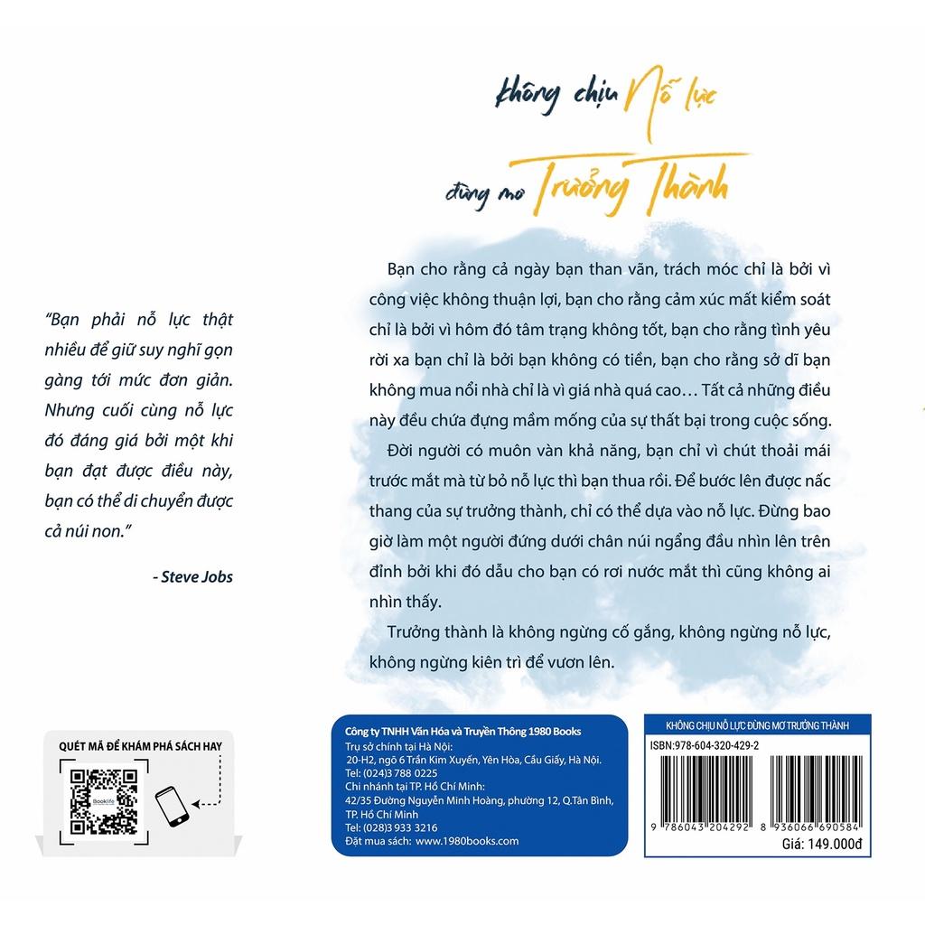 Làm thế nào chúng ta mới có thể phá kén mà giương cánh bay cao, thật sự trải nghiệm được cảm giác tự do bay lượn giữa đất trời bao la? Không chịu nỗ lực đừng mơ trưởng thành sẽ giúp bạn giải đáp câu hỏi ấy.