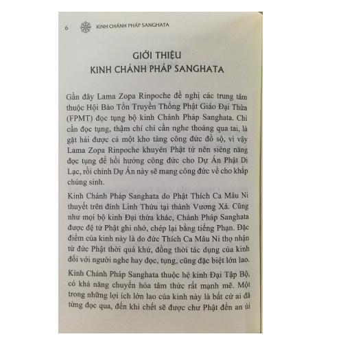 Gần đây Lama Zopa Rinpoche đề nghị các trung tâm thuộc Hội Bảo Tồn Truyền Thống Phật Giáo Đại Thừa (FPMT) đọc tụng kinh Chánh Pháp Sanghata. Chỉ cần đọc tụng, thậm chí chỉ cần nghe thoáng qua t...