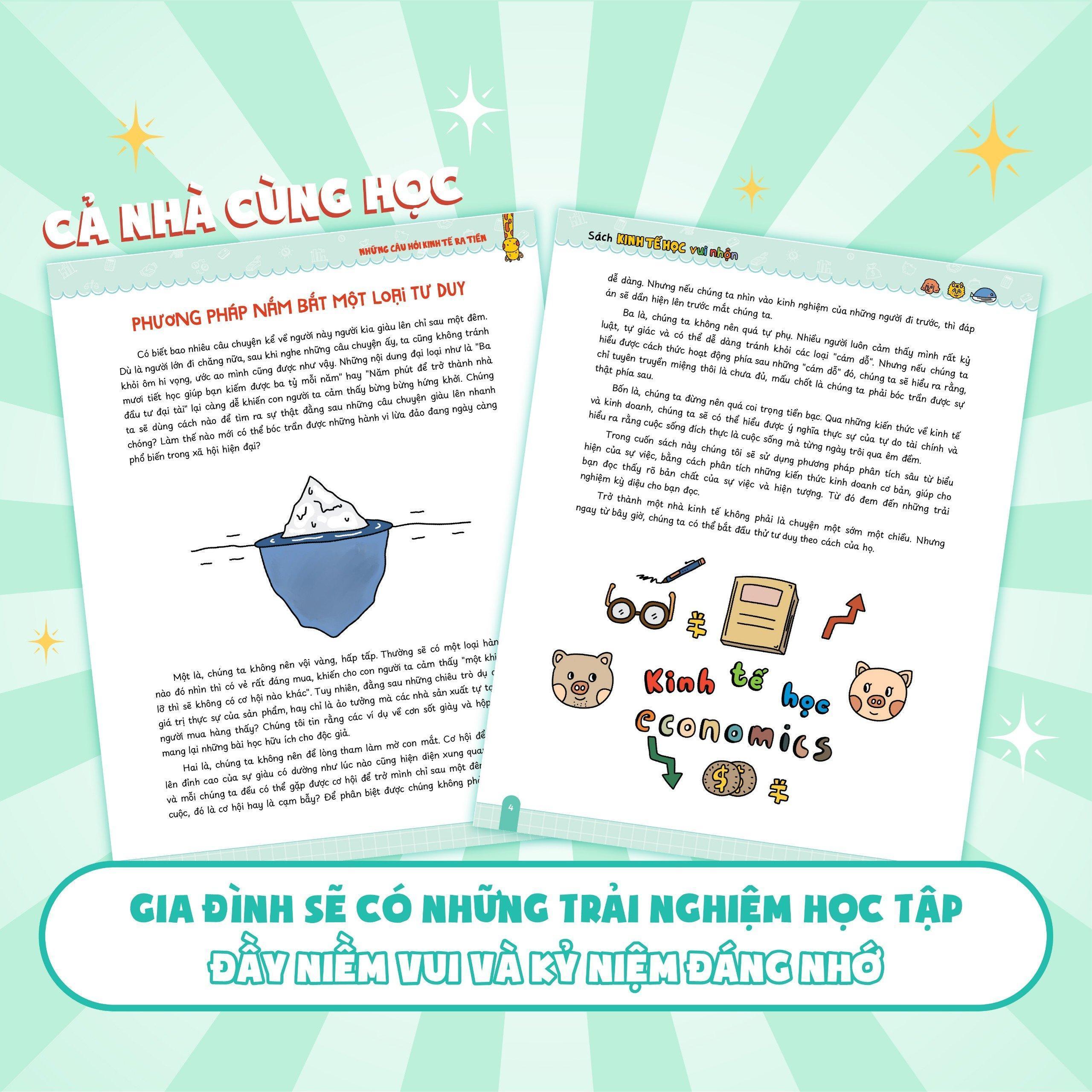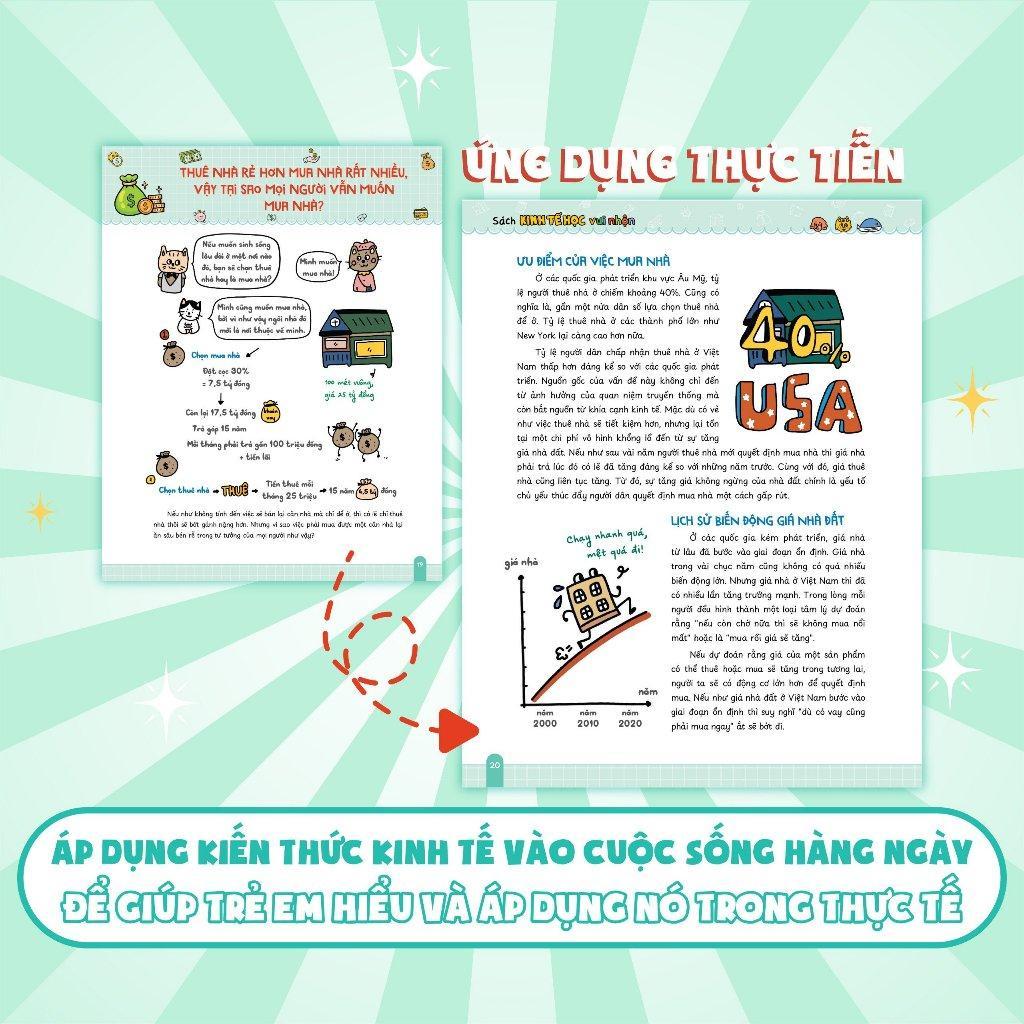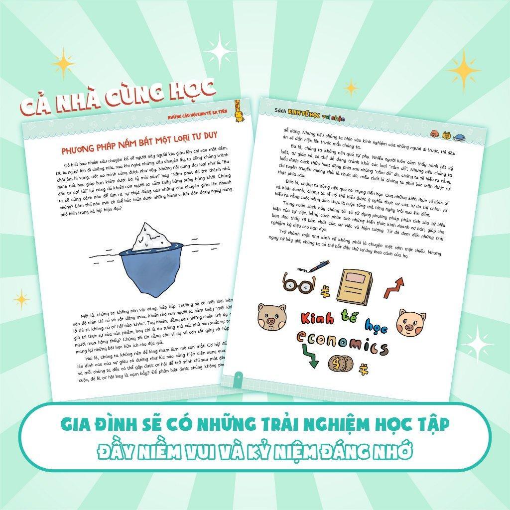 • Ứng dụng thực tiễn: Đưa kiến thức kinh tế vào cuộc sống hàng ngày, từ việc quản lý tài chính cá nhân đến hiểu biết về quy trình kinh doanh, giúp trẻ em và người lớn áp dụng kiến thức trong thực tế.