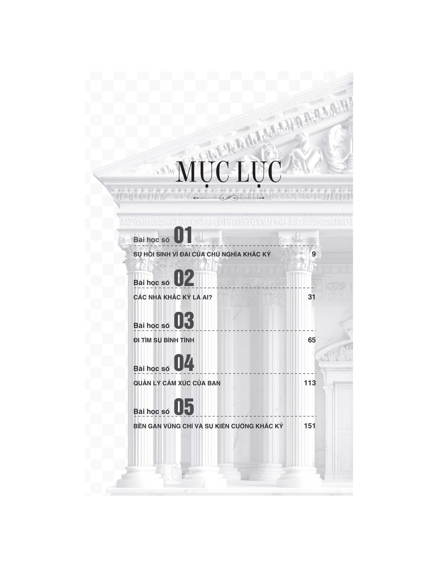Cuốn sách “Kỷ luật Khắc kỷ” của Nancy Sherman dẫn dắt chúng ta tìm hiểu cách tư tưởng Khắc kỷ – một trường phái triết học Hy Lạp - La Mã - có thể giúp nuôi dưỡng sức mạnh tinh thần trong thế giới hiện đại đầy biến động và áp lực.