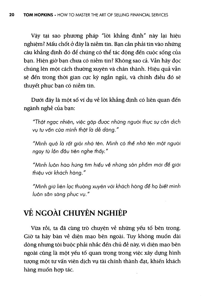 Khi Sự nghiệp bất động sản của tôi bắt đầu thăng hoa, tôi cũng bắt đầu cận dịch vụ của các chuyên gia tư vấn tài chính. Tôi cần những người có khả năng giúp tôi bảo toàn những khoản đầu tư, cho tôi lời khuyên về cách phân bố lợi nhuận, giúp tôi tránh những cái bẫy tài chính. Và lần này, tôi cũng vô cùng may mắn khi được làm việc với nhiều chuyên gia thực sự tài năng. Họ đã cho tôi thêm kiến thức và giúp tôi đưa ra những quyết định đúng đắn. Tôi rất cảm kích vì họ đã lựa chọn nghề tư vấn tài chính, một ngành nghề giúp đỡ người khác khi họ cần.