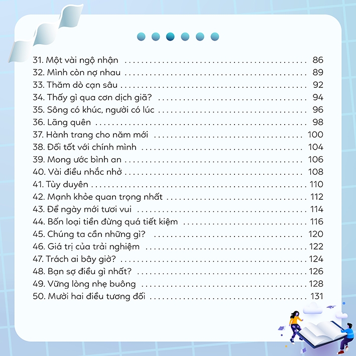 Trước khi tạm khép lại dòng sách thiên về tính triết lý đời sống, Làm Mới Vườn Tâm như một cách tri ân những người Thầy - người Bạn đã và đang đồng hành cùng dịch giả. Nguyện chúc quý vị luôn tìm thấy ý nghĩa và niềm vui từ những điều bình dị hằng ngày, và không ngừng “làm mới vườn tâm” theo cách riêng của mỗi người.