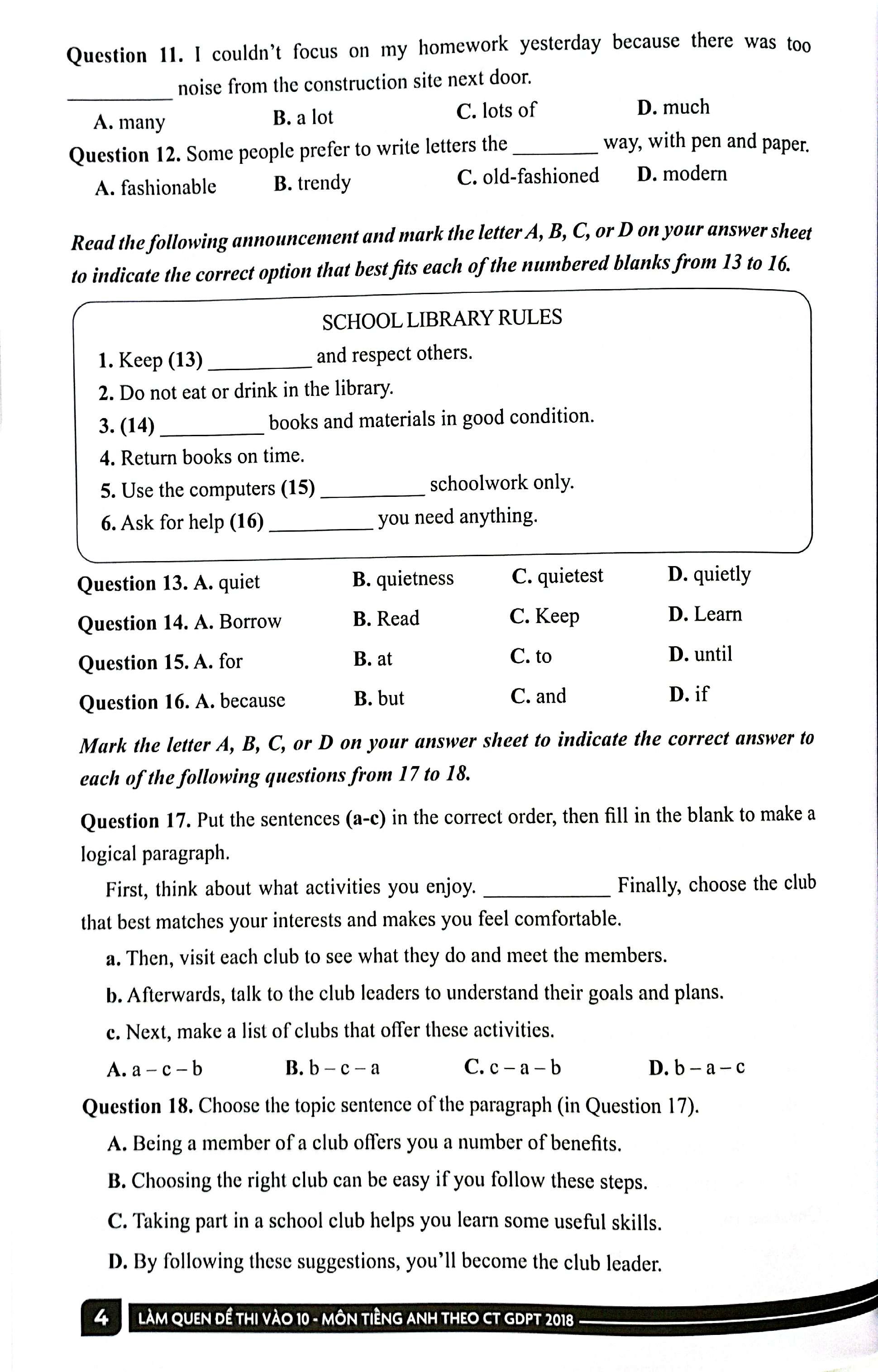 Làm Quen Đề Thi Vào 10 - Môn Tiếng Anh - Theo CT GDPT 2018 - Dành Cho Học Sinh