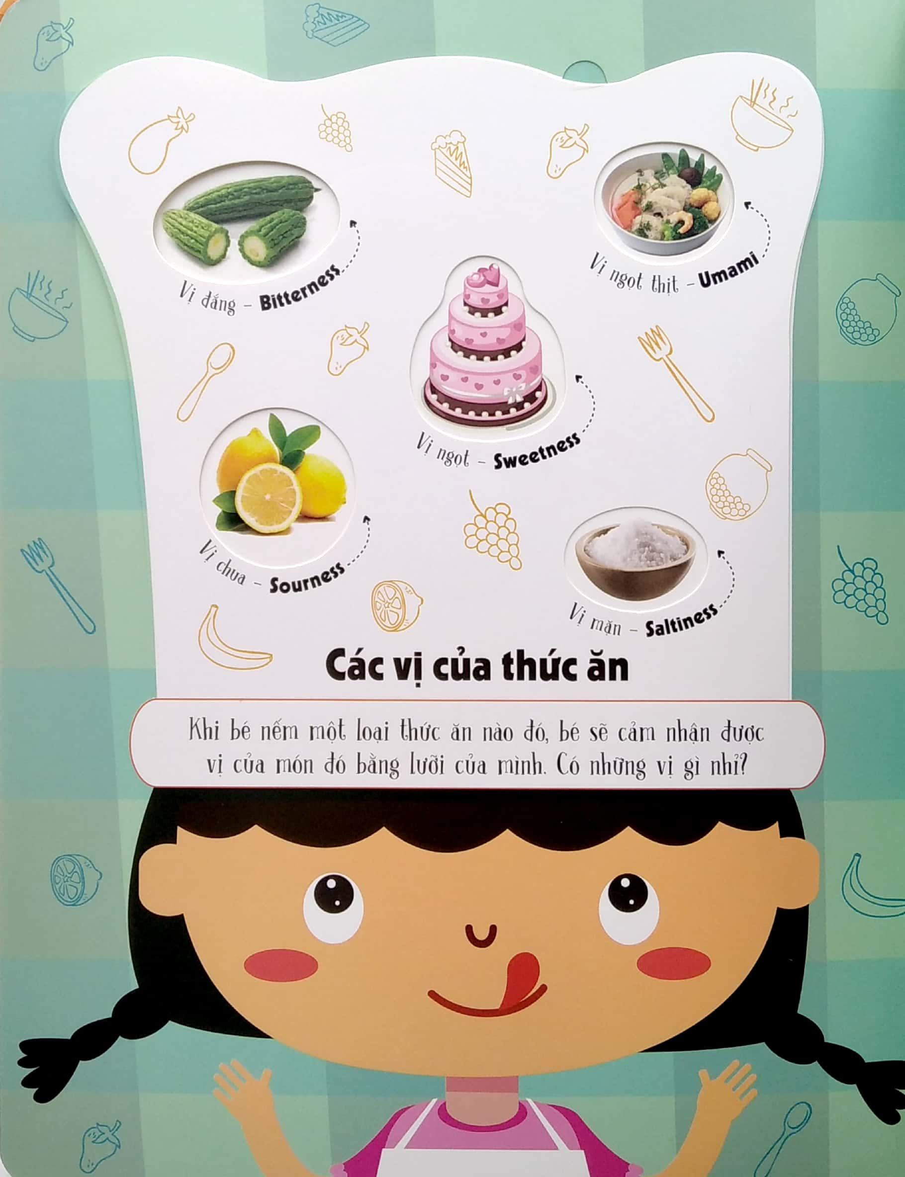 Mua tại TiktokLật! Lật! Lật! Bất ngờ thật. Bố mẹ và bé hãy MỞ cuốn sách này ra rồi LẬT những miếng ghép lên để cùng HỌC rất nhiều từ song ngữ Việt - Anh về thức ăn nhé! Sẽ cực kỳ vui và bổ ích đấy!