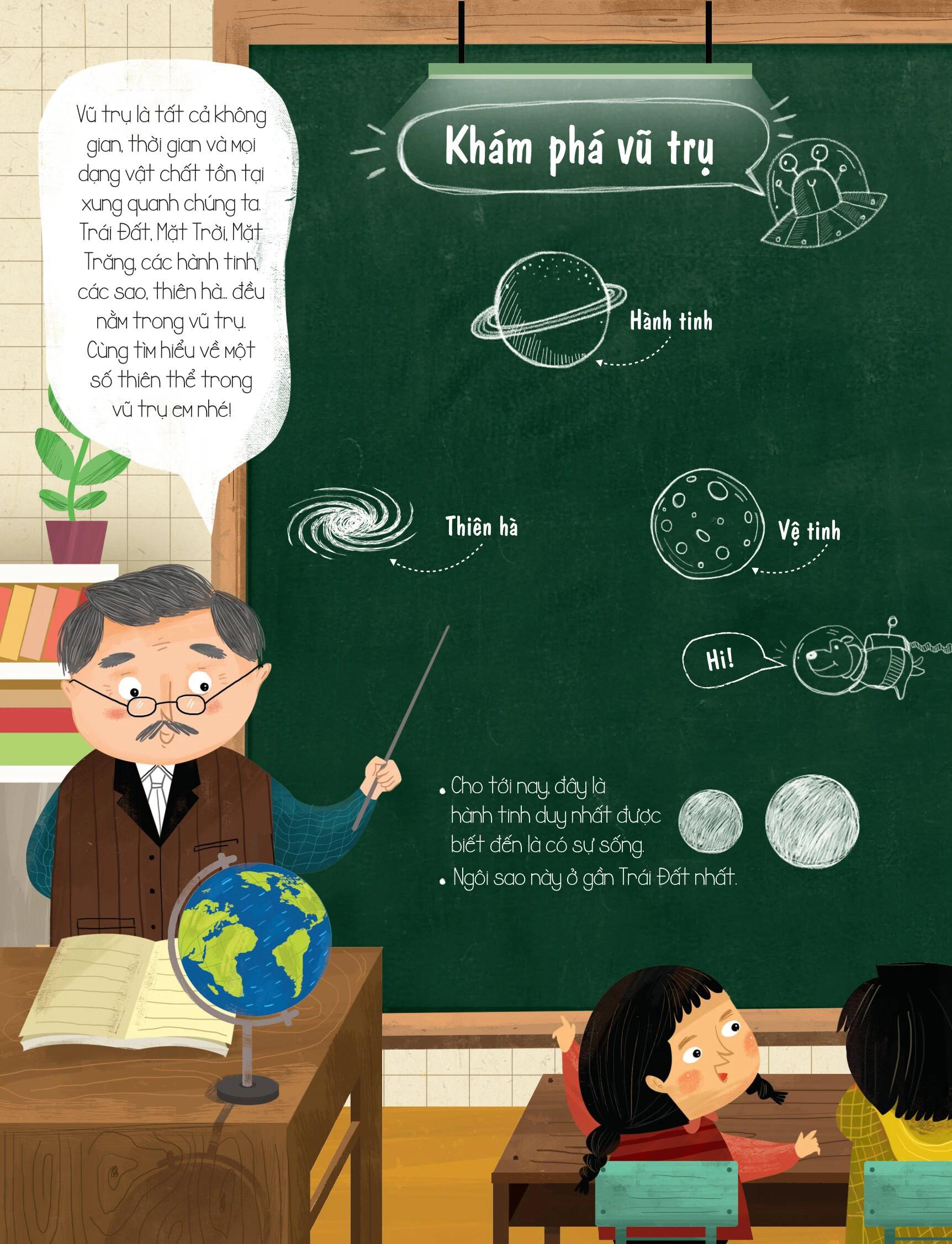 Đáp án nằm ngay trong những miếng ghép độc đáo của cuốn sách nảy! Em hãy MỞ cuốn sách này ra với LẬT những miếng ghép lên để tìm hiểu những kiến thức thú vị về vũ trị bao la và đầy bí ẩn của chúng ta nhé!