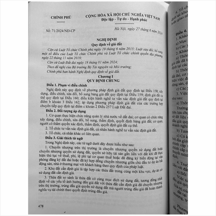 – Nghị định số 102/2024/NĐ-CP ngày 30 tháng 7 năm 2024 của Chính phủ Quy định chi tiết thi hành một số điều của Luật Đất đai 2024