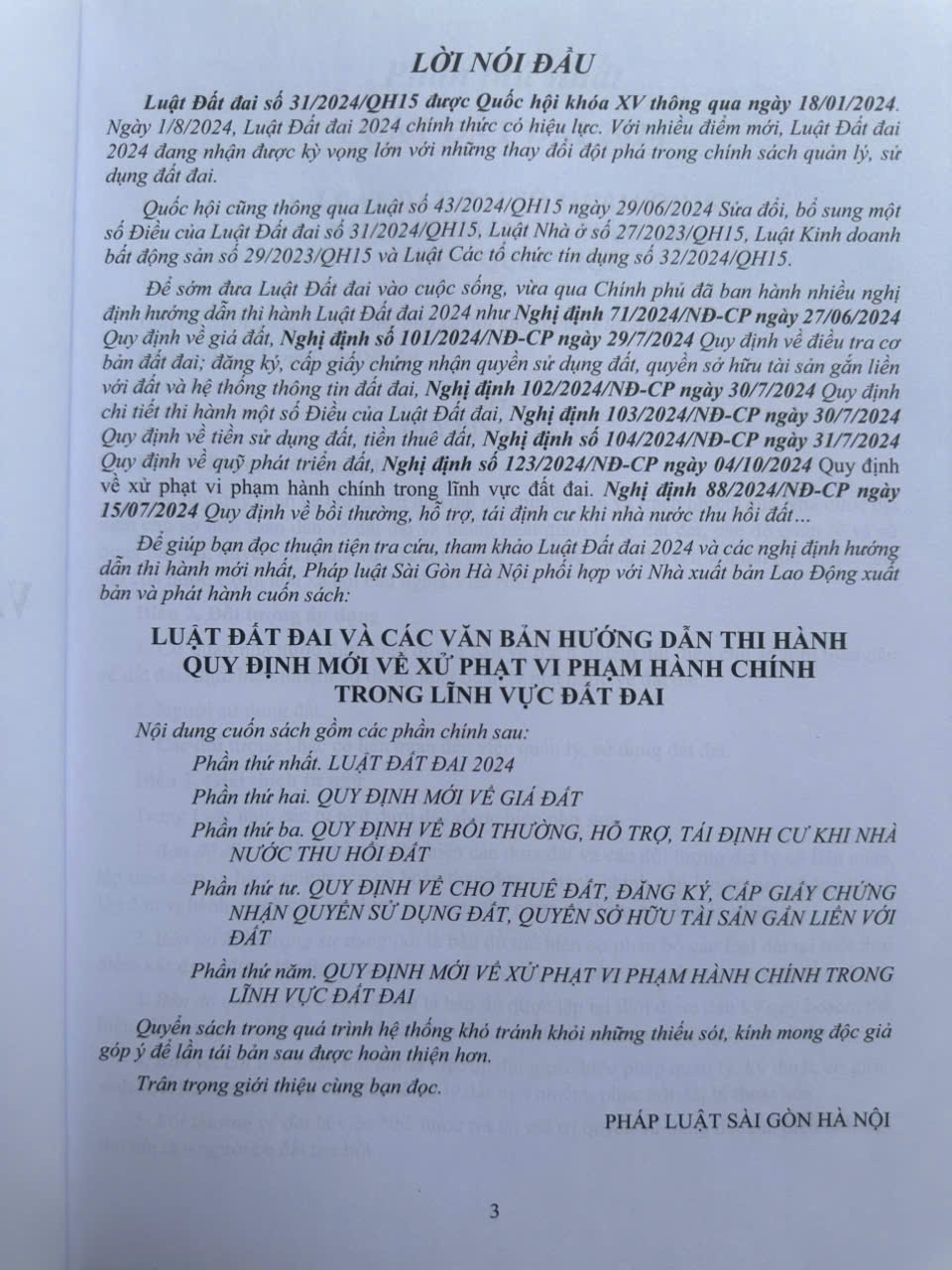 Luật Đất đai (sửa đổi, bổ sung năm 2024) và các văn bản hướng dẫn thi hành Tác giả: Quốc Hội Nhà xuất bản: Lao Động Công ty phát hành: Nhà sách Tư Pháp Ngày