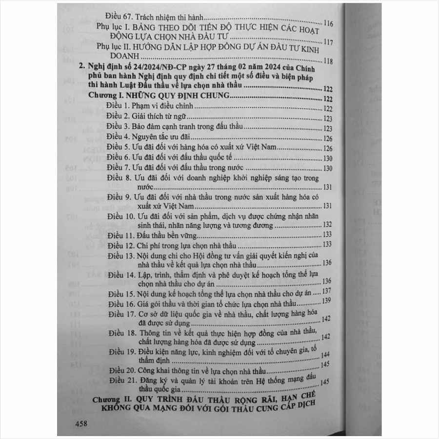Nội dung cuốn sách bao gồm Luật Đấu thầu năm 2013 (sửa đổi năm 2016, 2017, 2019, 2020); các Nghị định của Chính phủ hướng dẫn chi tiết thi hành một số điều của Luật