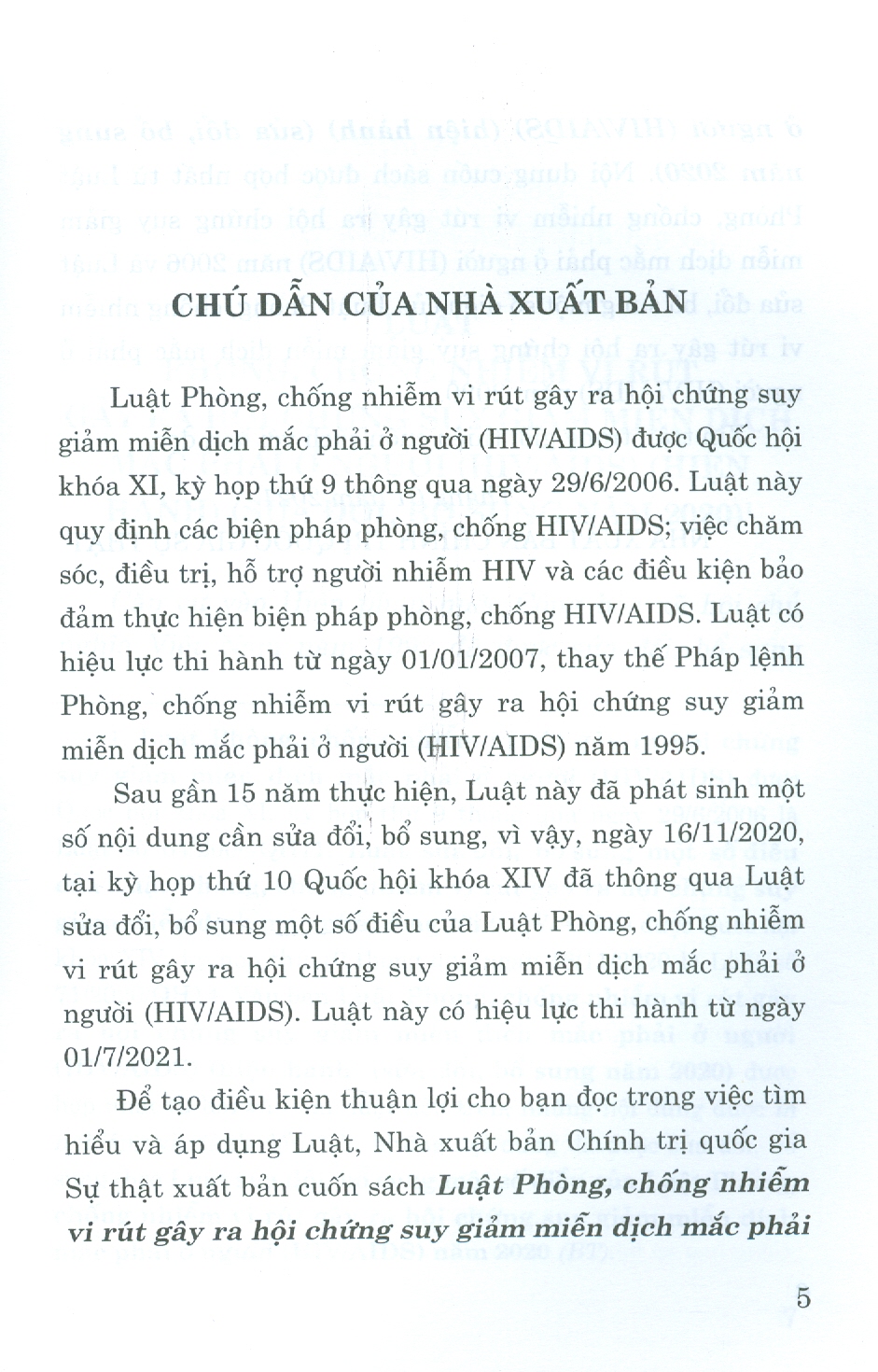 Sách Luật Phòng Chống Vi Rút Gây Ra Hội Chứng Suy Giảm Miễn Dịch Mắc Phải Ở Người (HIV/AIDS) (Hiện hành) (Sửa Đổi Bổ Sung Năm 2020)