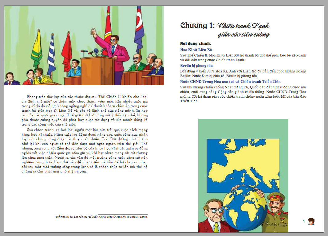 Là sự tiếp nối của bộ sách “Lược Sử Thế Giới Bằng Tranh” kể về các thời kì lịch sử của thế giới từ xã hội nguyên thủy, xã hội phong kiến, các cuộc chiến tranh thế giới tới thời hiện đại.