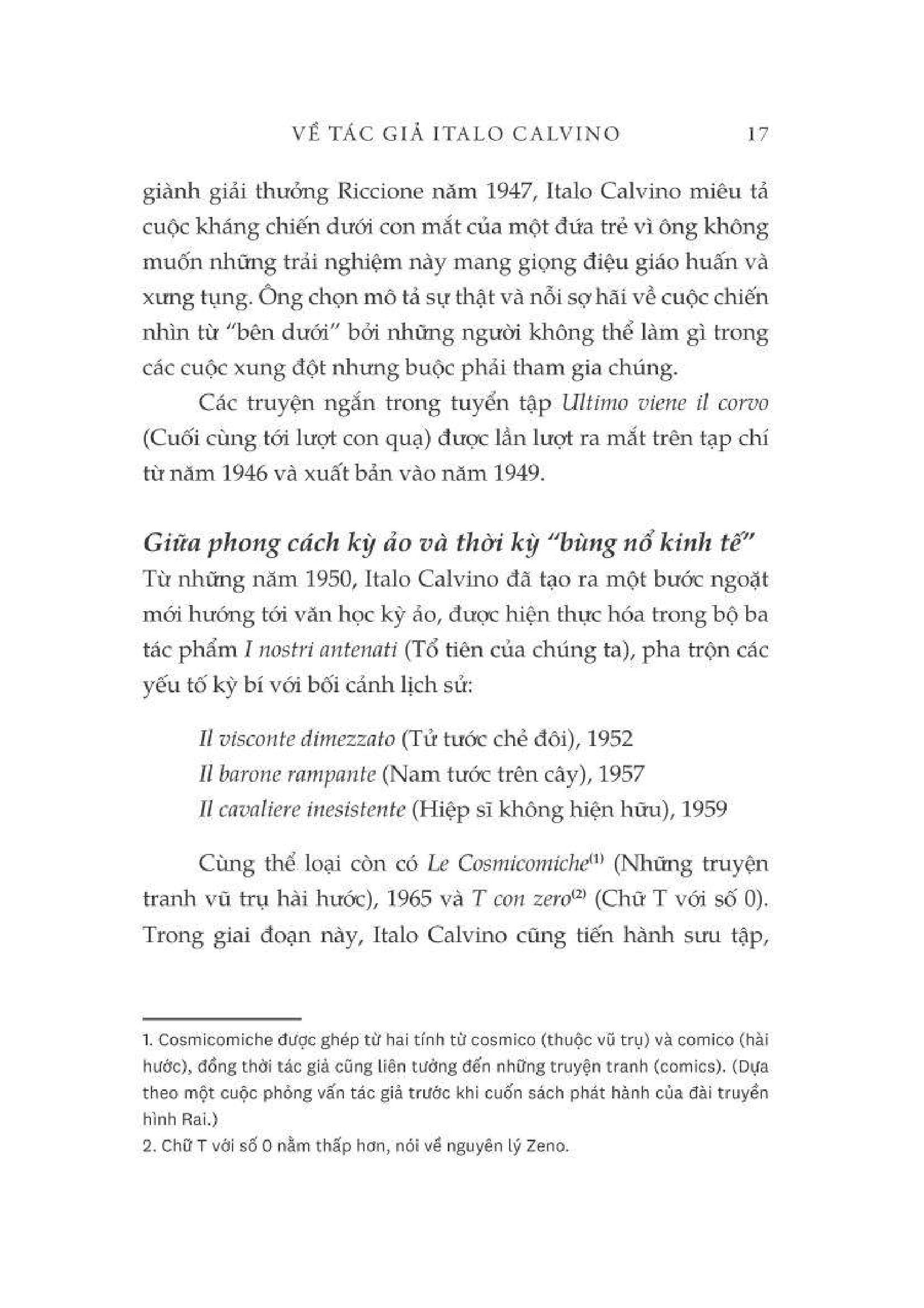 Marcovaldo hay Các mùa trong thành phố gồm hai mươi truyện ngắn, mỗi truyện tái hiện một mùa trong năm với vòng xoay bốn mùa lặp lại năm lần. Tác phẩm xoay quanh nhân vật chính là Marcovaldo, một lao động phổ thông luôn hướng về thiên nhiên nhưng buộc phải sống giữa lòng thành phố, người luôn tìm ra niềm vui từ những dấu vết nhỏ bé, giản dị như một cái lá vàng úa trên cành hay nấm mọc ở vệ đường. Marcovaldo còn là cha của một gia đình nghèo khó, đông con với những bộn bề lo toan của cuộc sống. Cũng chính từ đây, hàng loạt tình huống khôi hài với cái kết bất ngờ liên tục diễn ra khiến bức tranh về cuộc sosongs đời thường của một gia đình lao động nghèo ở Ý hiện lên đầy sống động và thú vị.