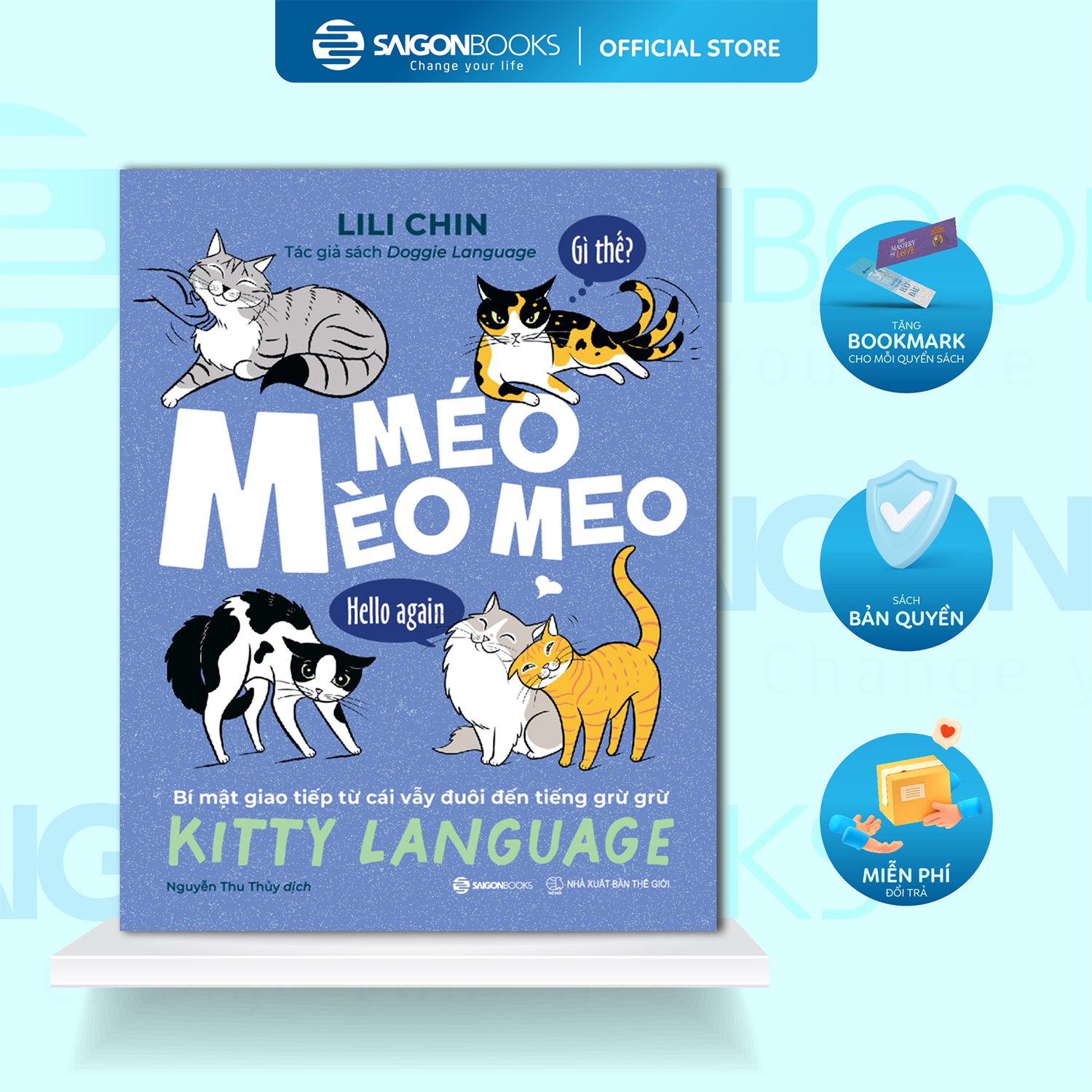 Quyển sách “Kitty Language: An Illustrated Guide to Understanding Your Cat” - quyển sách “đọc vị” loài mèo đình đám trong hội con sen toàn thế giới nay đã chính thức có phiên bản Việt hóa với tên: “Mèo méo meo - Bí mật giao tiếp từ cái vẫy đuôi đến tiếng grừ grừ”. Quyển sách nhận được 4.6 sao trên sàn Amazon và trở thành quyển cẩm nang đặc biệt giúp “sen” kết nối với “quàng thượng” theo một cách vừa khoa học, vừa gần gũi. Những hình minh họa đáng yêu từ tác giả Lili Chin sẽ giúp bạn thấu hiểu “ngôn ngữ” của boss yêu qua mọi bộ phận cơ thể: mặt, mắt, tai, râu và đuôi; và cả cách thay đổi tư thế hay hướng và tốc độ di chuyển.