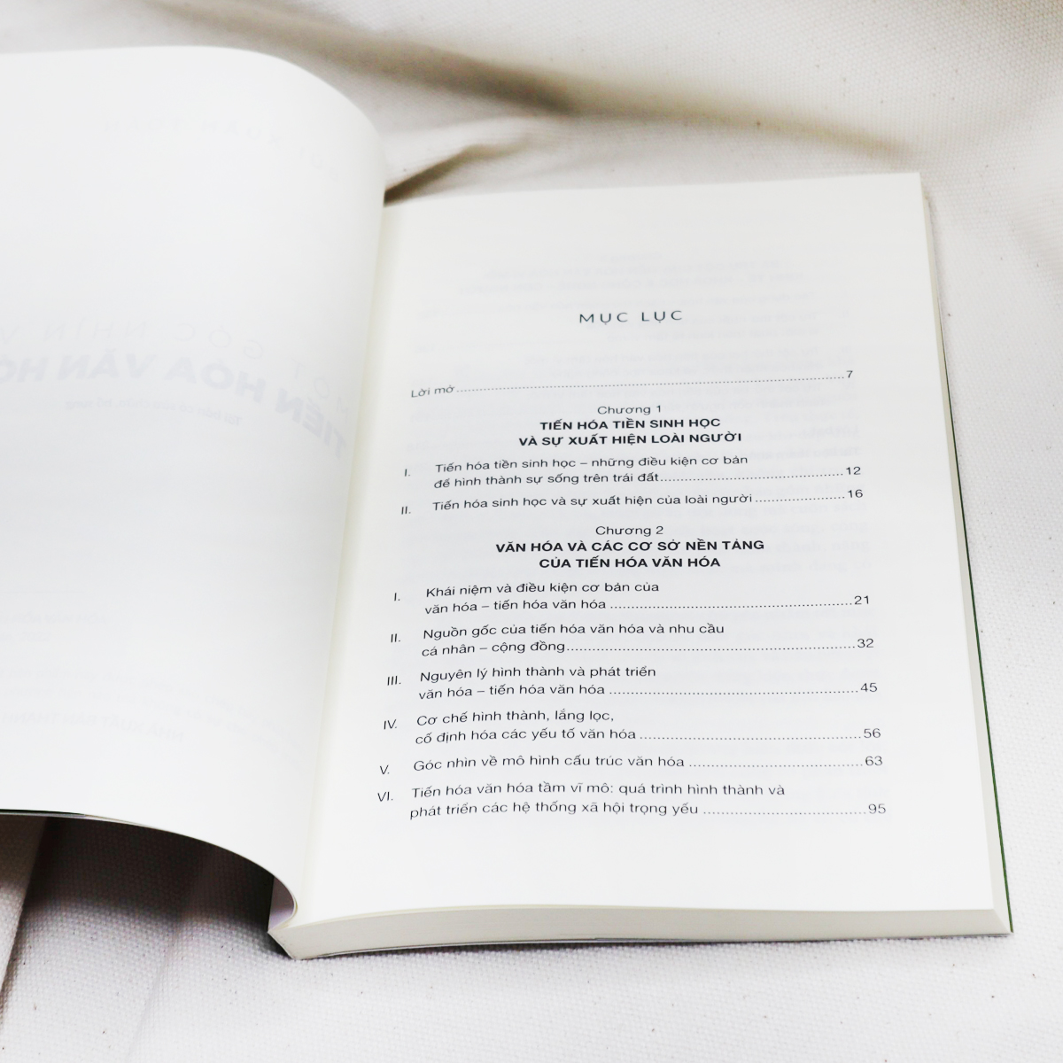 • Tiến hóa loài người và tiến hóa văn hóa: Con người xuất hiện, trải qua quá trình tiến hóa loài và tiến hóa văn hóa khoảng 1,8 triệu năm trở lại đây. Quá trình này gồm sơ lược tiến hóa loài và quá trình loài người từ lối sống bầy đàn nguyên thủy dần phát triển thành xã hội hiện nay. Quá trình này gọi là tiến hóa văn hóa. Tuy nhiên, góc nhìn về tiến hóa văn hóa mà chúng tôi chia sẻ trong cuốn sách này mới chỉ là những quan điểm có tính khai mở, cần được nghiên cứu bổ sung, phát triển thêm nữa. Mặt khác mô hình tiến hóa văn hóa chúng tôi đề cập đến ở đây mang tính cổ điển trong khi đó, thời đại thông tin số hóa, internet, trí tuệ nhân tạo – công nghệ 4.0 sẽ tác động vào tiến trình này làm thay đổi rất nhiều vai trò của các nhân tố tạo nên mô hình tiến hóa văn hóa cổ điển.