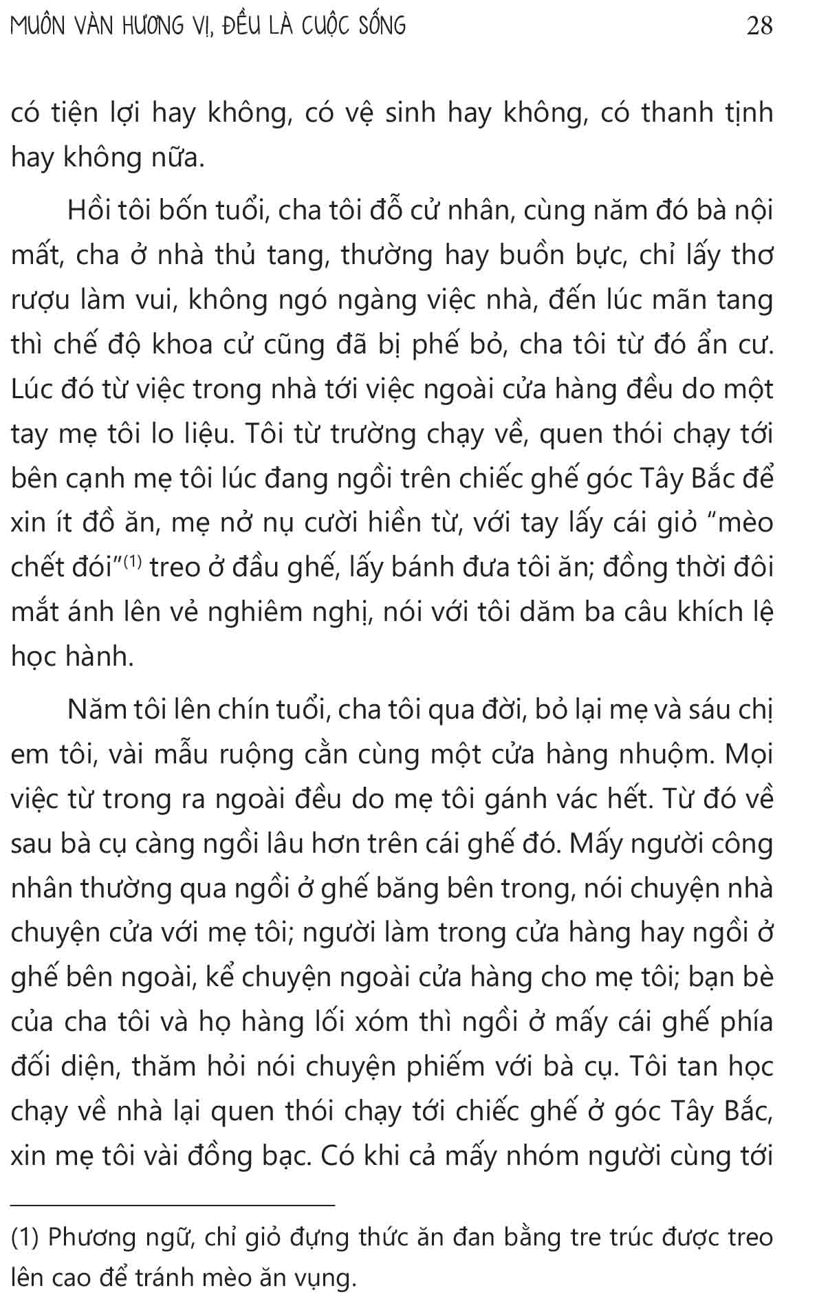 “Muôn vàn hương vị đều là cuộc sống” là cuốn sách dành cho những ai đang tìm kiếm một cuộc sống bình yên được viết bởi Phong Tử Khải. Cuốn sách là tập hợp 40 bài tản văn về chính những trải nghiệm trong cuộc sống nhàn cư của tác giả.