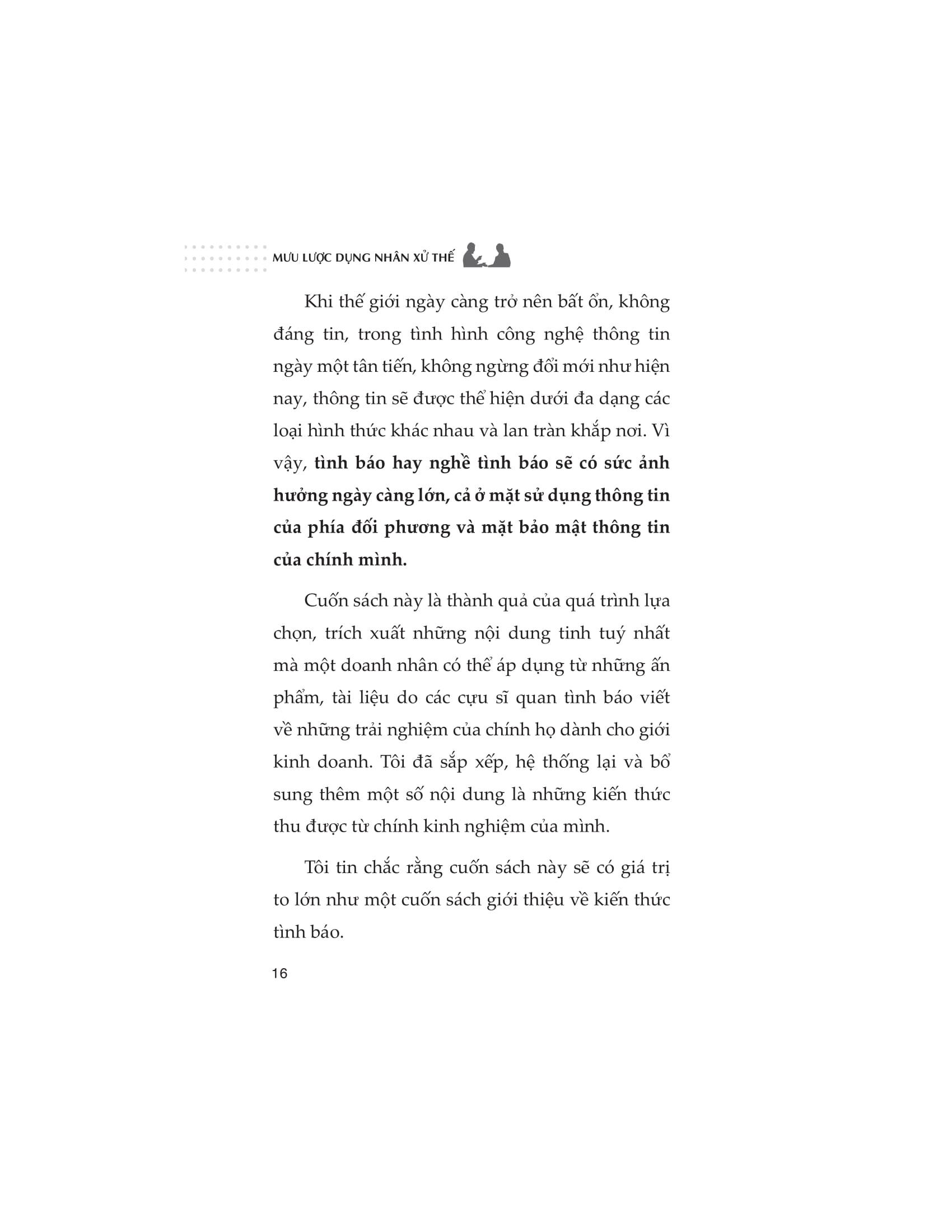 "Mưu lược dụng nhân xử thế" của tác giả Atsumori Ueda, một cựu chuyên gia phân tích tình báo tại Bộ Quốc phòng Nhật Bản, là một cuốn sách độc đáo và hấp dẫn, tiết lộ cách các đặc vụ bí mật hàng đầu trên thế giới sử dụng trí óc của họ để đạt được kết quả xuất sắc trong những nhiệm vụ đầy cam go.