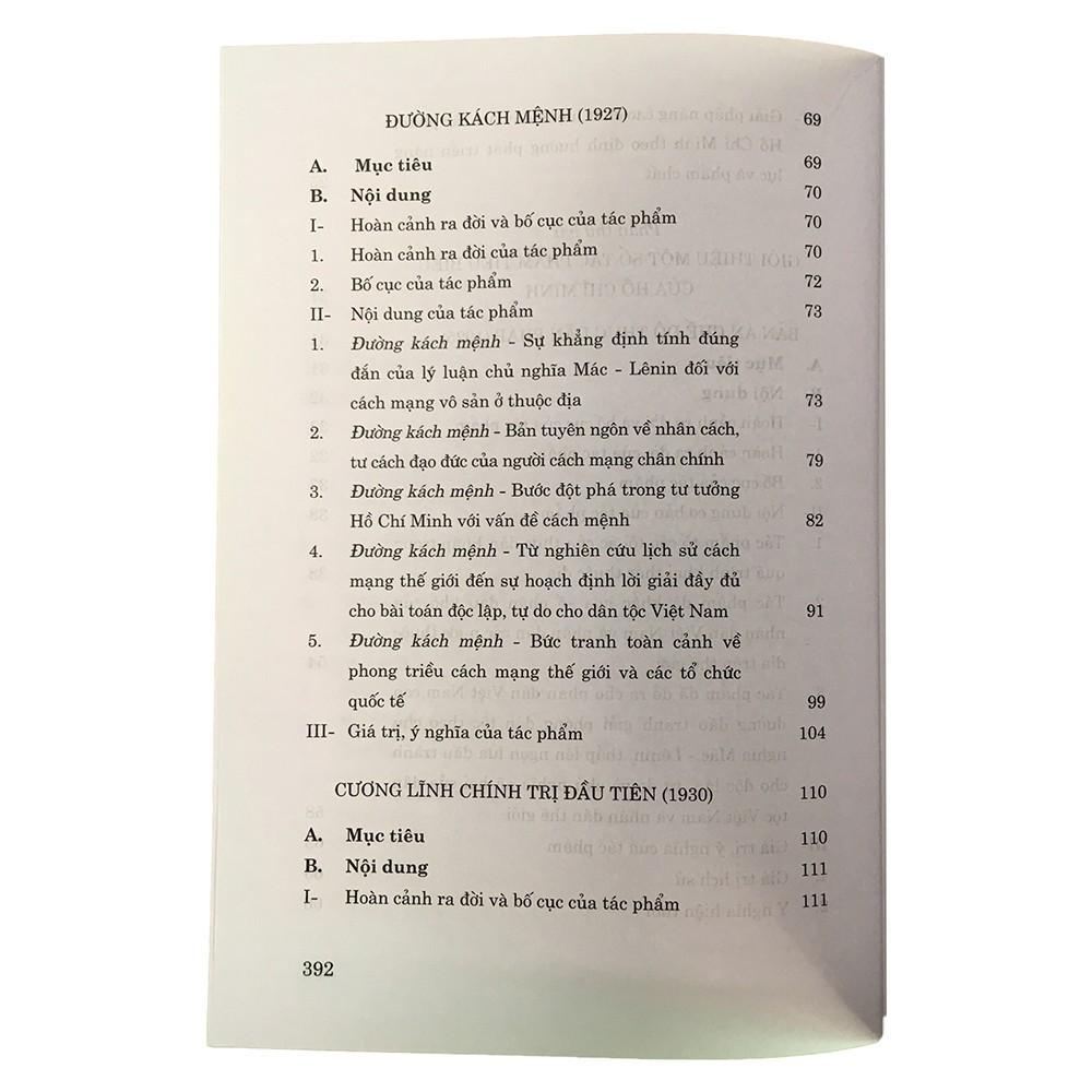 Nội dung cuốn sách gồm hai phần: Phần thứ nhất nêu một số vấn đề lý luận chung về dạy học tác phẩm Hồ Chí Minh; Phần thứ hai giới thiệu một số tác phẩm tiêu biểu của Hồ Chí Minh (như: Bản án chế độ thực dân Pháp, Đường kách mệnh, Cương lĩnh chính trị đầu tiên, Tuyên ngôn độc lập...). Trong mỗi tác phẩm, các tác giả xác định mục tiêu dạy học tác phẩm (năng lực, phẩm chất), hoàn cảnh ra đời và bố cục của tác phẩm, nội dung cơ bản của tác phẩm, giá trị của tác phẩm và một số câu hỏi ôn tập, củng cố...