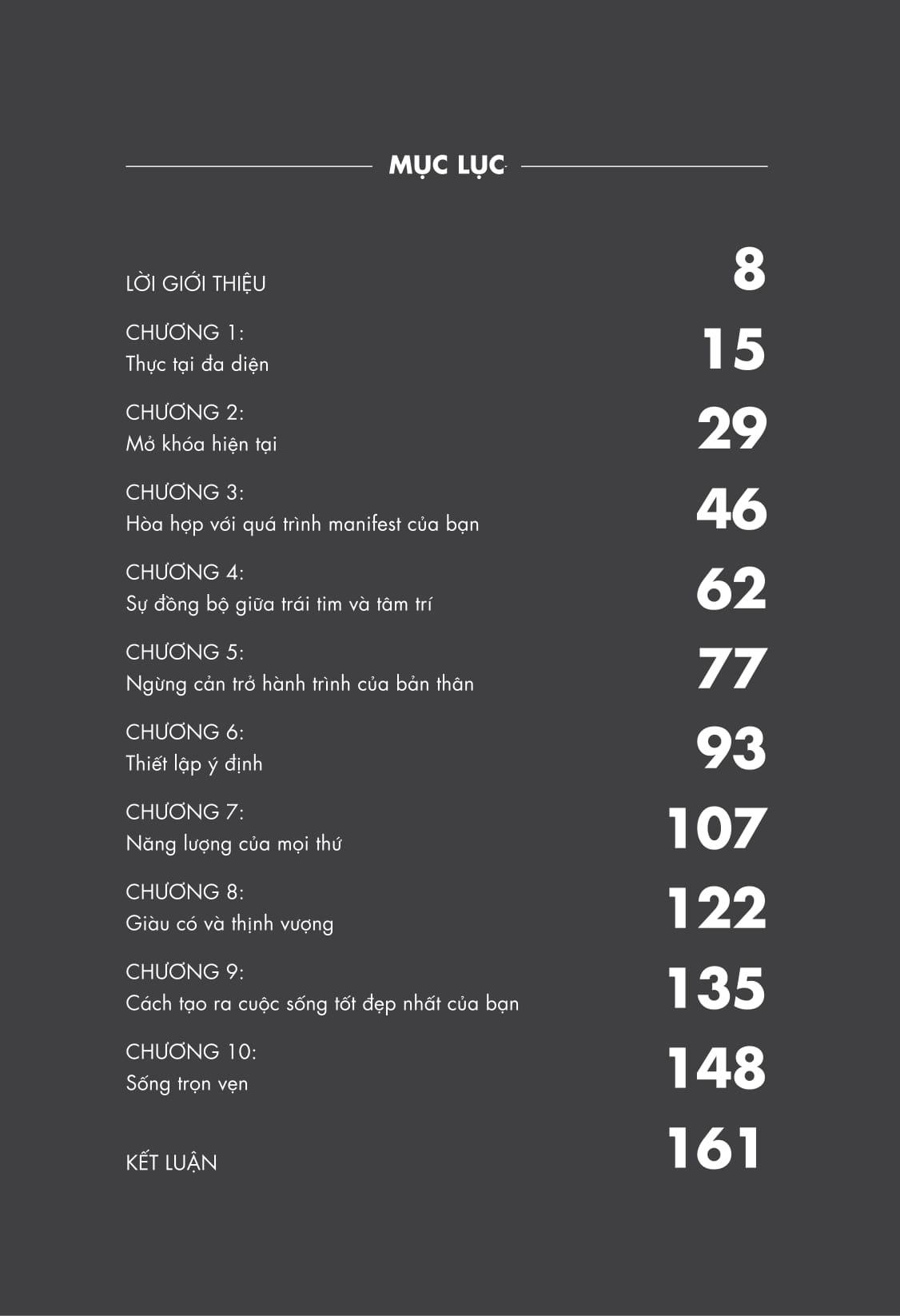 - Thói quen đơn giản hằng ngày giúp tái lập trình niềm tin và đẩy nhanh kết quả. Nghệ thuật manifest toàn diện sẽ mang đến một lộ trình rõ ràng để bạn thay đổi tư duy, sức mạnh tiềm thức và nâng cao tần số rung động của bản thân trong mọi khía cạnh cuộc sống từ đó thay đổi thực tại của chính m.ình.