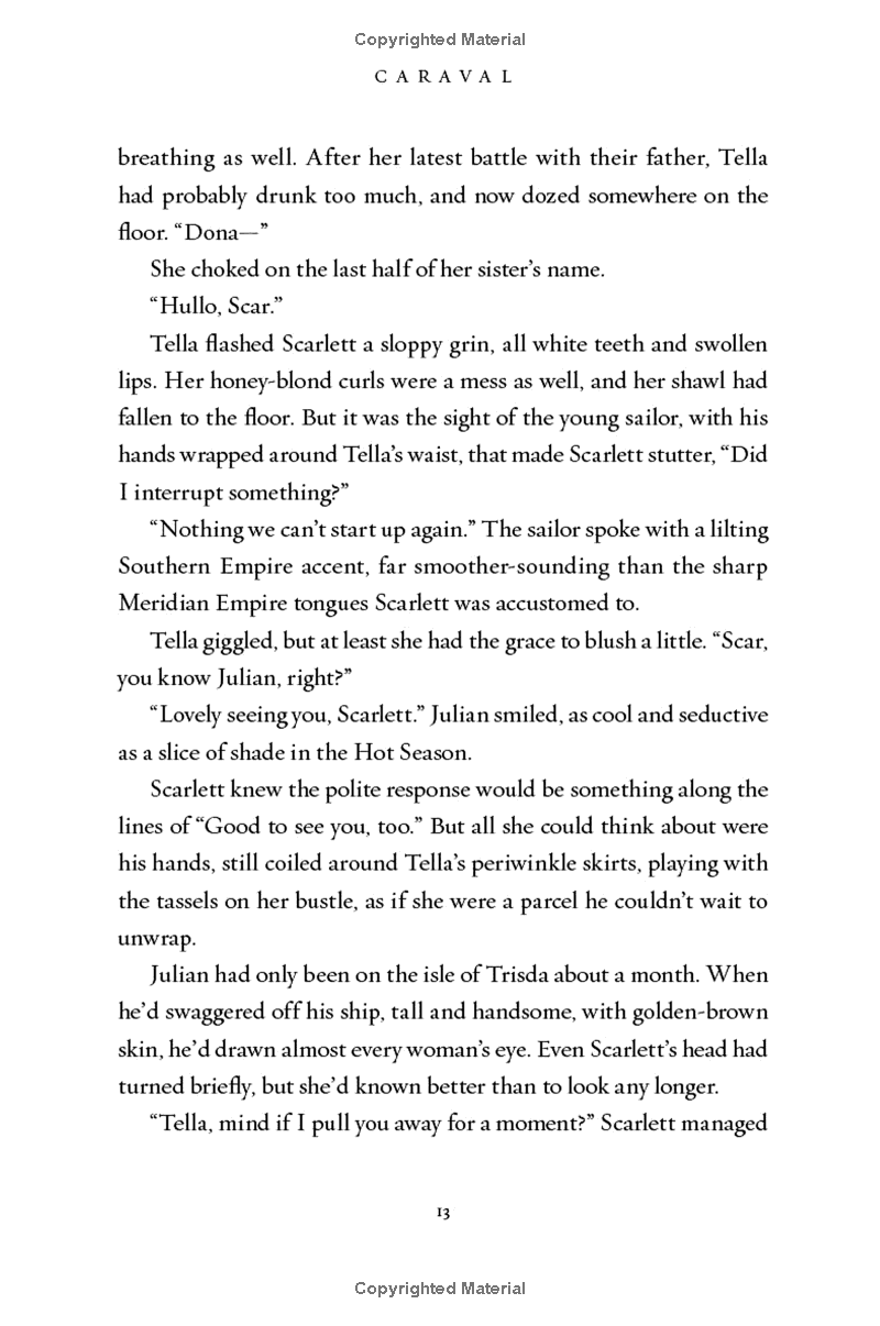 Scarlett has been told that everything that happens during Caraval is only an elaborate performance. But whether Caraval is real or not, she must find Tella before the five nights of the game are over, and her sister disappears forever.