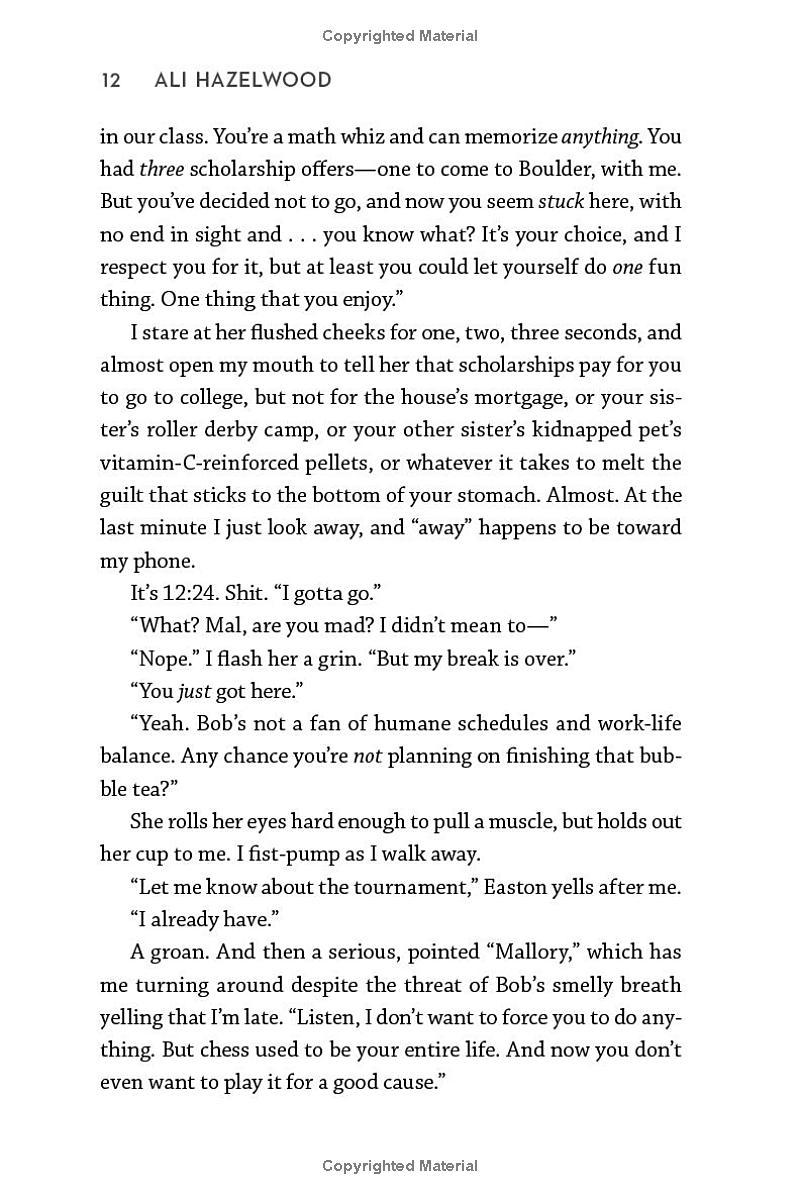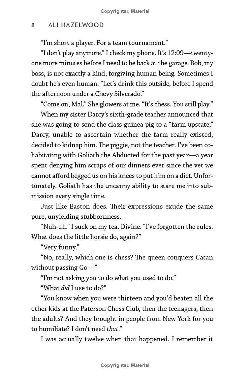 Mallory Greenleaf is done with chess. Every move counts nowadays; after the sport led to the destruction of her family four years earlier, Mallory’s focus is on her mom, her sisters, and the dead-end job that keeps the lights on. That is, until she begrudgingly agrees to play in one last charity tournament and inadvertently wipes the board with notorious “Kingkiller” Nolan Sawyer: current world champion and reigning Bad Boy of chess.