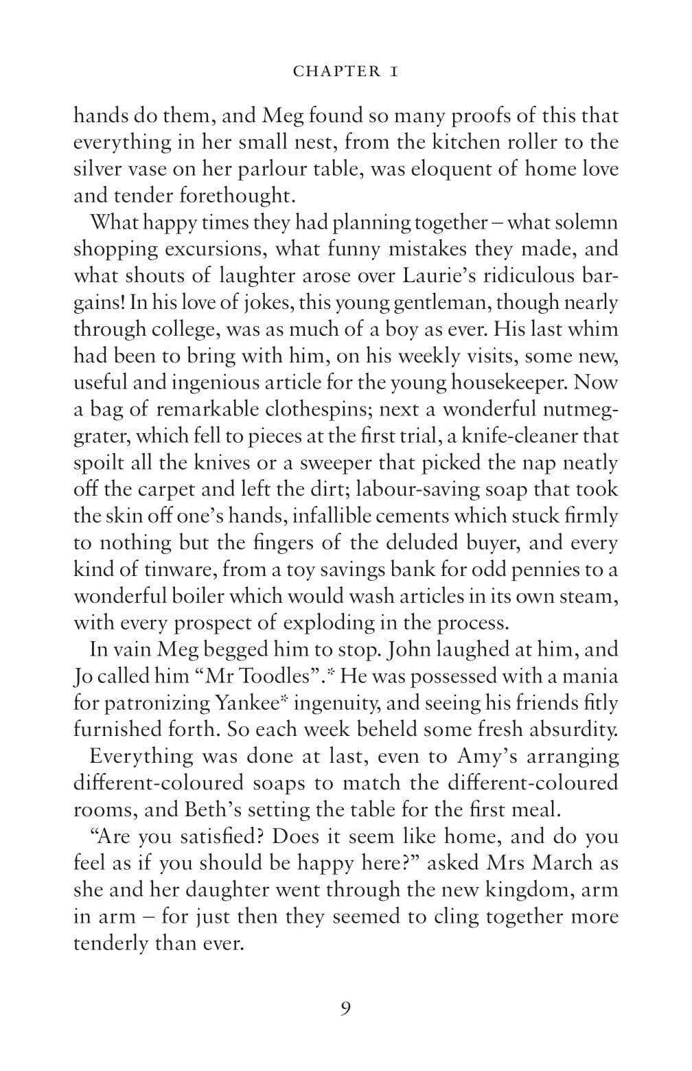 Three years have passed since the events narrated in Little Women, and the four March sisters are approaching adulthood, with all its accompanying challenges and expectations. Meg is preparing for her wedding, Beth continues to struggle with her health, Jo is more than ever devoting herself to literature and Amy is about to go on a tour of Europe with her aunt. Their experiences, hopes and ambitions are set in counterpoint to each other, until the whole family is brought together by tragedy and misfortune.