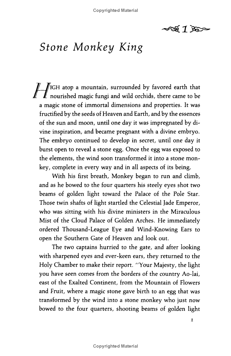 Much more than a picaresque adventure novel, Monkey is a profound allegory of the struggle that must occur before spiritual transformation is possible. David Kherdian's masterful telling brings this classic of Chinese literature to life in a way that is true to the scope and depth of the original.