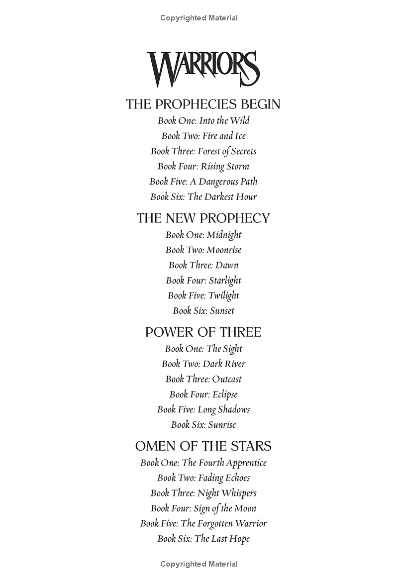 The spirit-cats have spoken: to survive, the cats from the mountains must grow and spread like the Blazing Star. Clear Sky believes the only way to grow is to band together again, but few cats are willing to ally with him. While Tall Shadow plans to establish a new camp in the pine forest, River Ripple is content by the water, and Wind Runner has made her own home on the moor.