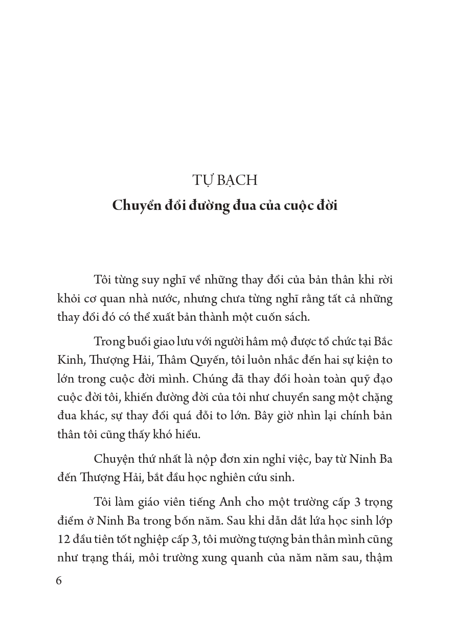 Hành trình của tác giả Trần Lập Phi là hành trình "chuyển đổi đường đua của cuộc đời". Khi đọc cuốn sách này, bạn sẽ phải tự đặt ra câu hỏi rằng liệu tương lai "ổn định", êm ả không chút bất ngờ có phải tương mà bản thân mong muốn hay không. Bạn sẽ phải làm việc với bản thân, giữa một bên truyền thống là theo đuổi sự yên ổn, thế giới ngoài kia hiểm ác và đầy những điều bất trắc; còn nửa còn lại thì thúc giục bạn trải nghiệm và khám phá nhiều hơn, đừng quá "ổn định" mà kìm hãm chính bản thân mình.
