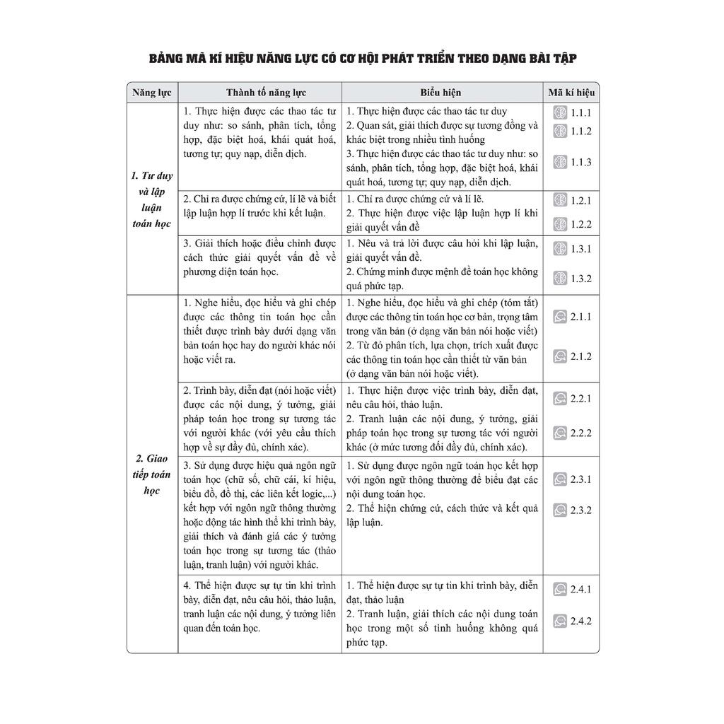 - Cuối mỗi chuyên đề đều có bài tập đánh giá để học sinh có cơ sở tự đánh giá mức độ hiểu bài và vận dụng kiến thức, kĩ năng đã học vào xử lí các dạng bài quan trọng;