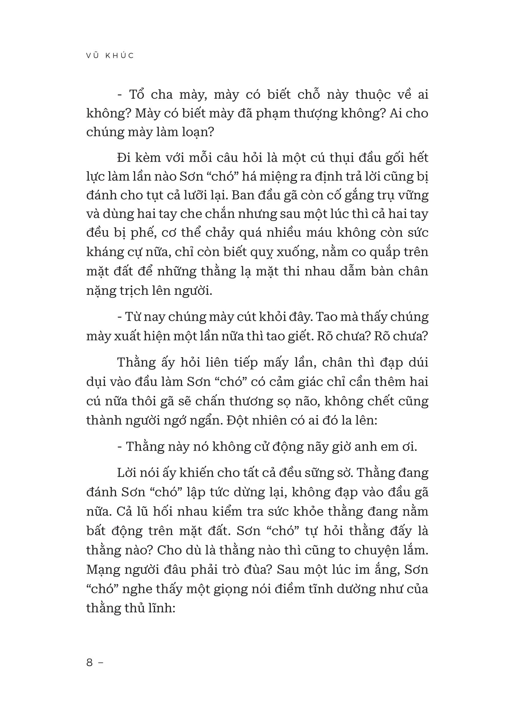 Giọng văn có phần mạnh mẽ, quyết liệt, đôi khi sử dụng ngôn ngữ "bụi bặm", phù hợp với nội dung và bối cảnh của câu chuyện.