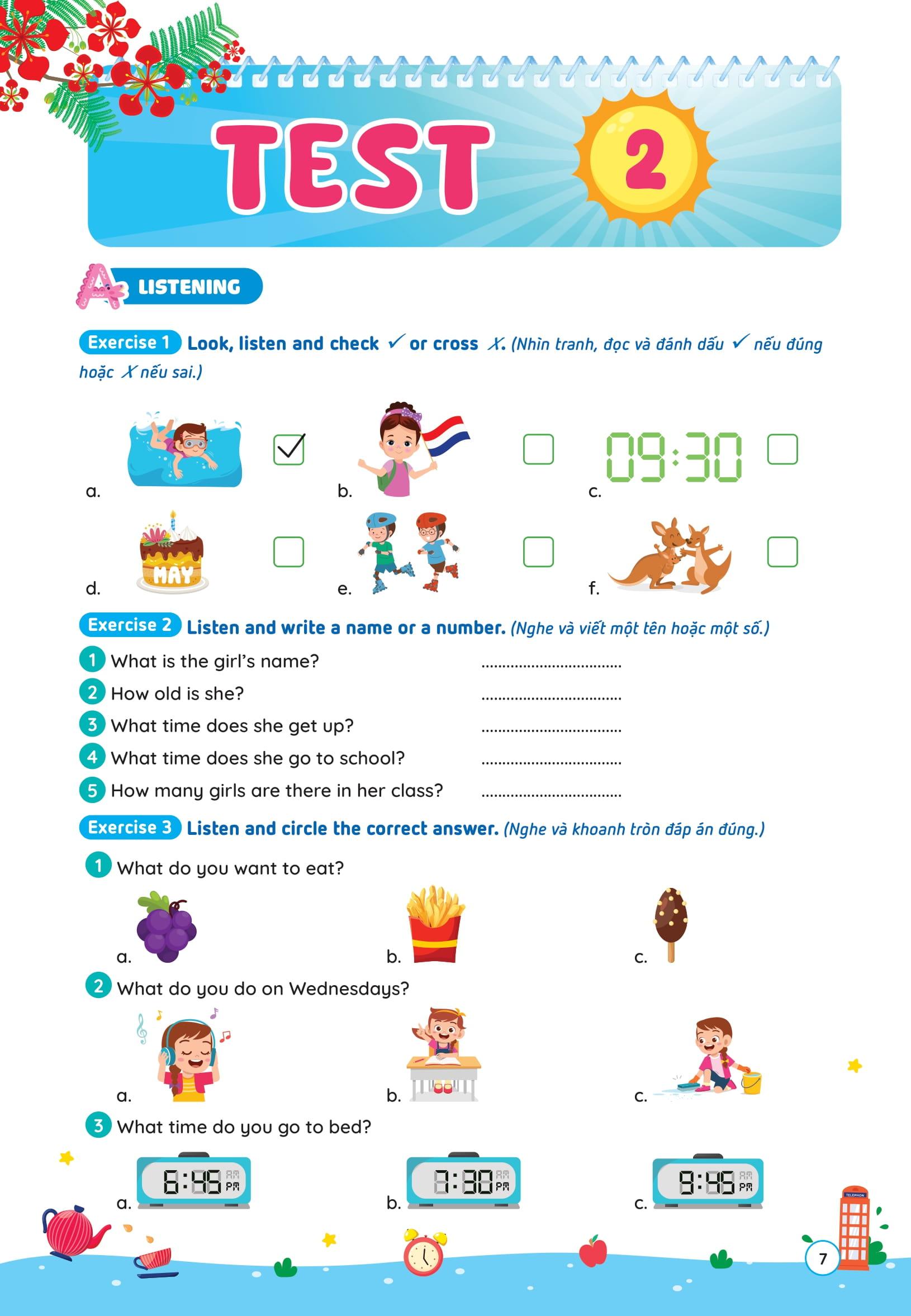 Cuốn sách “Đề kiểm tra Tiếng Anh 4” là một tài liệu cần thiết cho các em trong việc ôn tập và củng cố kiến thức để chuẩn bị cho các bài kiểm tra đánh