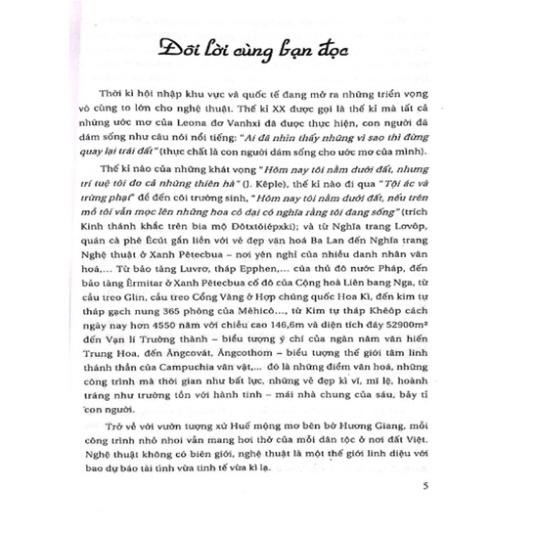 Thế kỉ nào của những khát vọng “ Hôm nay tôi nằm dưới đất, nhưng trí tuệ tôi đo cả những thiên hà” (J. Kêple), thế kỉ nào đi qua “Tội ác và trùng phạt” để đến cõi trường sinh, “ Hôm nay tôi nằm dưới đất, nếu trên mồ tôi vẫn mọc lên những hoa cỏ dại có nghĩa rằng tôi đang sống” (trích Kinh thánh khắc trên bia mộ Đôtxtôiépxki); và từ Nghĩa trang Lovôp, quán cà phê Êcút gắn liền với vẻ đẹp văn hoá Ba Lan đến Nghĩa trang Nghệ thuật ở Xanh Pêtecbua – nơi yên nghỉ của nhiều danh nhân văn hoá, Từ bảo tàng Luvrơ, tháp Epphen, của thủ đô nước Pháp, đến bảo tàng Êrmitar ở Xanh Petecbua cố đô của Cộng hoà Liên bang Nga, từ cầu treo Glin, cầu treo Cổng Vàng ở Hợp chúng quốc Hoa Kì, đến kim tự tháp gạch nung 365 phòng của Mêhicô, từ Kim tự tháp Khêớp cách ngày nay hơn 4550 năm với chiều cao 146,6m và diện tích đáy 52900m2 đến Vạn lí Trường thành – biểu tượng ý chí của ngàn năm văn hiến Trung Hoa, đến Ăngcovát, Ăngcothom – biểu tượng thế giới tâm linh thánh thần của Campuchia văn vật, đó là những điểm văn hoá, những công trình mà thời gian như bất lực, những vẻ đẹp kì vĩ, mĩ lệ, hoành tráng như trường tồn với hành tinh - mái nhà chung của sáu, bảy tỉ con người.