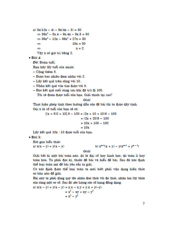 - Đại số lớp 7 - Hình học lớp 7