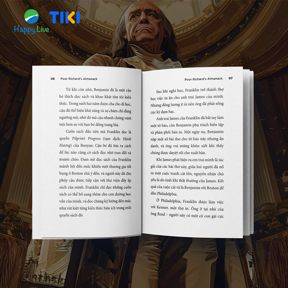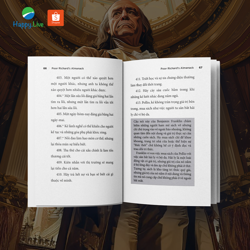 ✨Sách Poor Richard's Almanack - Tuyển tập các câu châm ngôn và thành ngữ, và một bản phác họa ngắn về cuộc đời của Benjamin Franklin - Happy Live