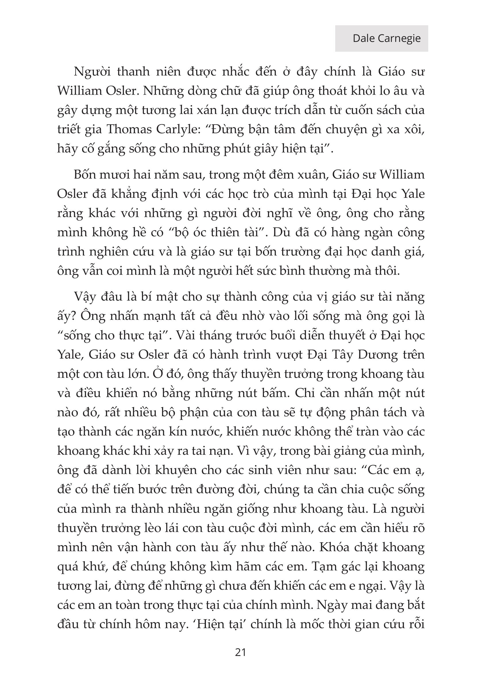 - Số trang: 260 GIỚI THIỆU SÁCH Sau Đắc Nhân Tâm thì Quẳng gánh lo đi và vi sống (How to Stop Worrying and start living) là một trong những cuốn sách bán chạy nhất trên thế giới. Bất kỳ ai đang sống đều sẽ có những lo lắng thường trực về học hành, công việc, những hoá đơn, chuyện nhà cửa,... Cuộc sống không dễ dàng giải thoát bạn khỏi căng thẳng, ngược lại, nếu quá lo lắng, bạn có thể mắc bệnh trầm cảm. Quẳng Gánh Lo Đi Và Vui Sống khuyên bạn hãy khóa chặt dĩ vãng và tương lai lại để sống trong cái phòng kín mít của ngày hôm nay. Mọi vấn đề đều có thể được giải quyết, chỉ cần bạn bình tĩnh và xác định đúng hành động cần làm vào đúng thời điểm. Cuốn sách được viết ra bởi người tự nhận mình là "một trong những kẻ bất hạnh nhất New York " nhưng chỉ sau một thời gian ngắn bằng những nỗ lực vượt bậc của mình, ông đã trở thành 1 người xuất trúng được hàng triệu người biết đến. Cuốn sách là tập hợp các quy tắc giúp bạn giải quyết những cảm xúc tiêu cực, lo lắng và buồn bã. Không chỉ đưa được người đọc đến một cuộc sống thú vị và trọn vẹn hơn mà còn giúp chúng ta nhận thức rõ về bản thân và cả những người xung quanh SƠ LƯỢC VỀ NỘI DUNG Cuốn sách bao gồm 10 phần khác nhau, với rất nhiều những kinh nghiệm và các lời khuyên từ tác giả cũng như những người đi trước, giúp bạn có thể nhận thức được những điều đúng đắn nhất. Chi tiết