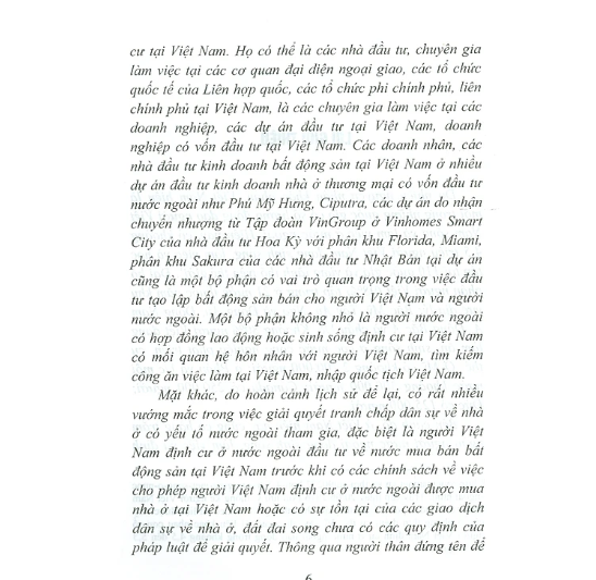 Cuốn sách này của nhóm giảng viên Trường Đại học Luật Hà Nội đã nghiên cứu dưới góc độ lý luận và thực tiễn của vấn đề mua nhà, sở hữu nhà ở của chủ thể có yếu tố nước ngoài để đề xuất về mặt cơ chế, chính sách, chỉ rõ các khoảng trống pháp lý hiện nay trong bối cảnh Quốc hội Việt Nam đang sửa đồng thời 3 đạo luật quan trọng là Luật Đất đai, Luật nhà ở và Luật kinh doanh bất động sản."