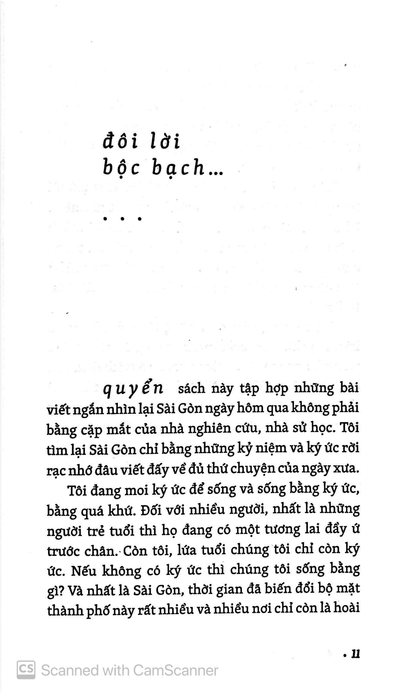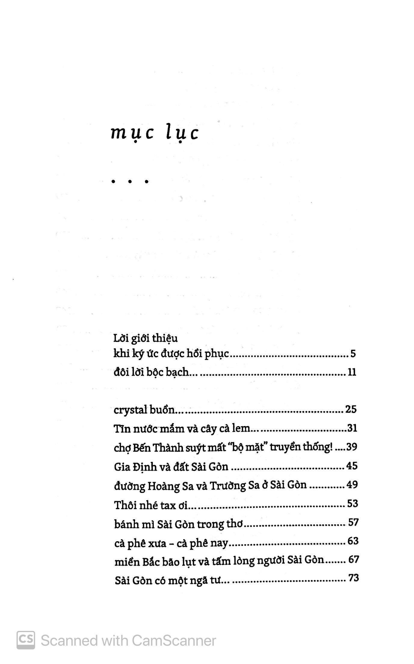 Quyển sách tập hợp những bài viết ngắn nhìn lại Sài Gòn ngày hôm qua, không phải bằng cặp mắt của nhà nghiên cứu mà của một người tha thiết yêu Sài Gòn, gắn bó với mảnh đất này từ bé và kể lại các câu chuyện thông qua những mảnh kỷ niệm; đó có thể là những câu chuyện hết sức sống động về chuyện ăn, uống, giải trí, thói quen sinh hoạt… cho đến những nhận định sâu sắc hơn về lịch sử, dấu tích cha ông trên một vùng đô thị đang hiện đại hóa từng ngày.