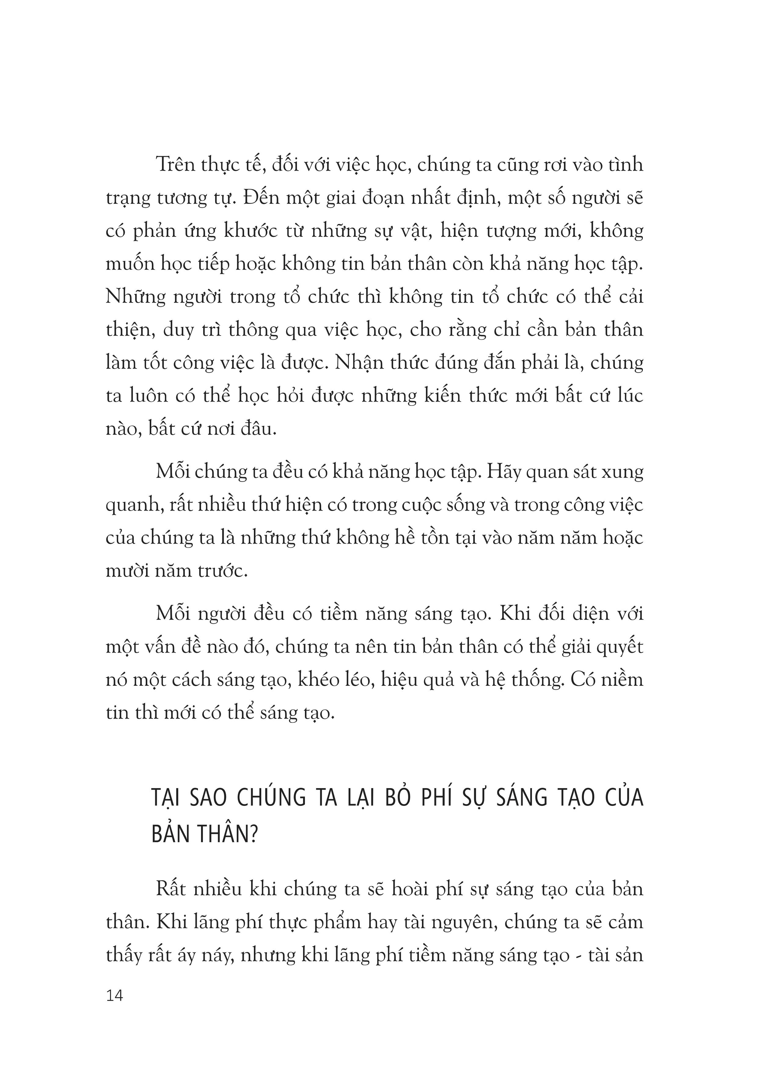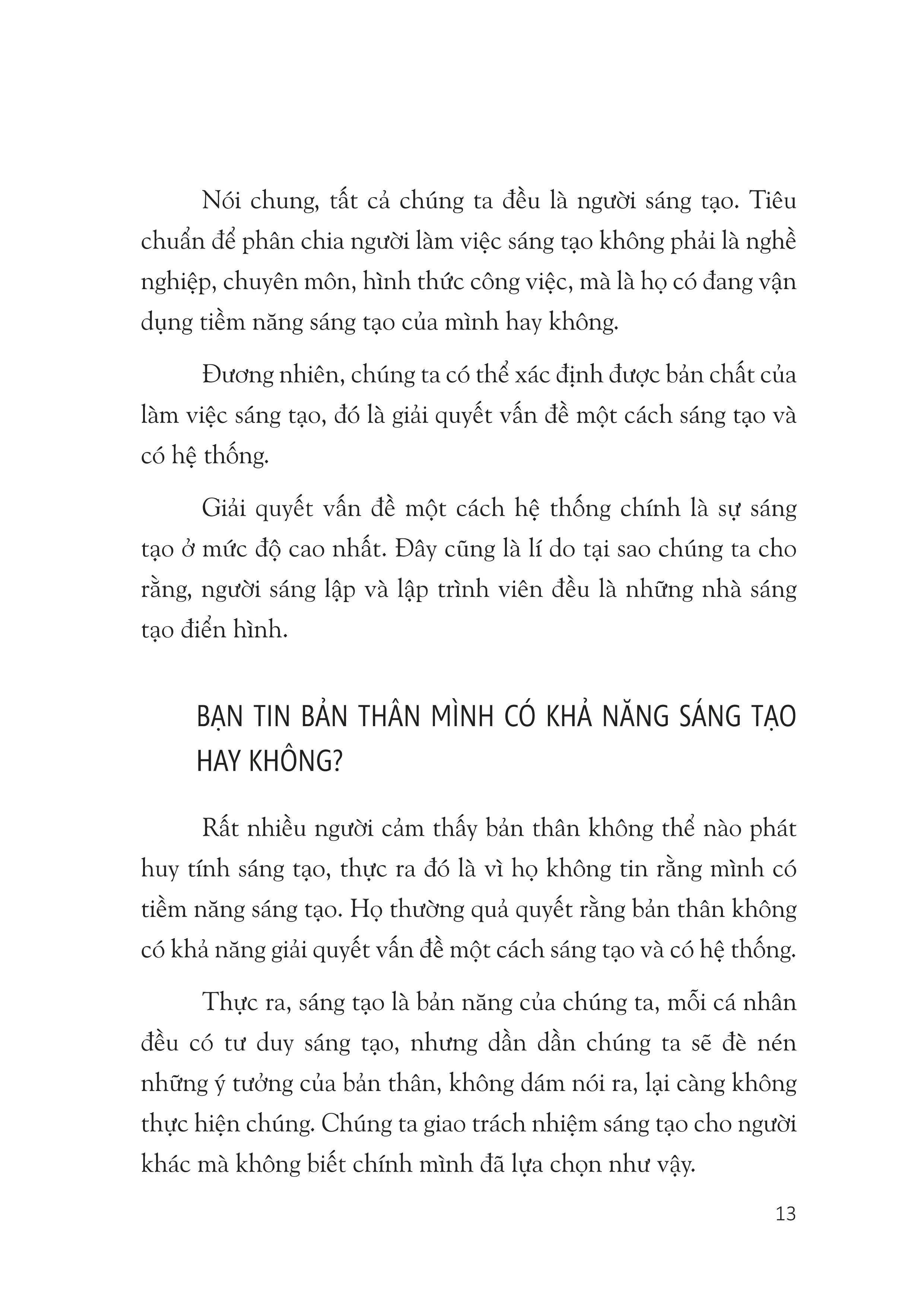 Chúng ta đang sống trong thời đại mà người người đều là nhà sáng tạo. Vậy thì làm thế nào để biến nơi làm việc trở thành nơi sáng tạo? Làm thế nào để mỗi cá nhân đều trở thành nhà sáng tạo thực thụ? Làm thế nào để quản lí sáng tạo một cách hiệu quả?