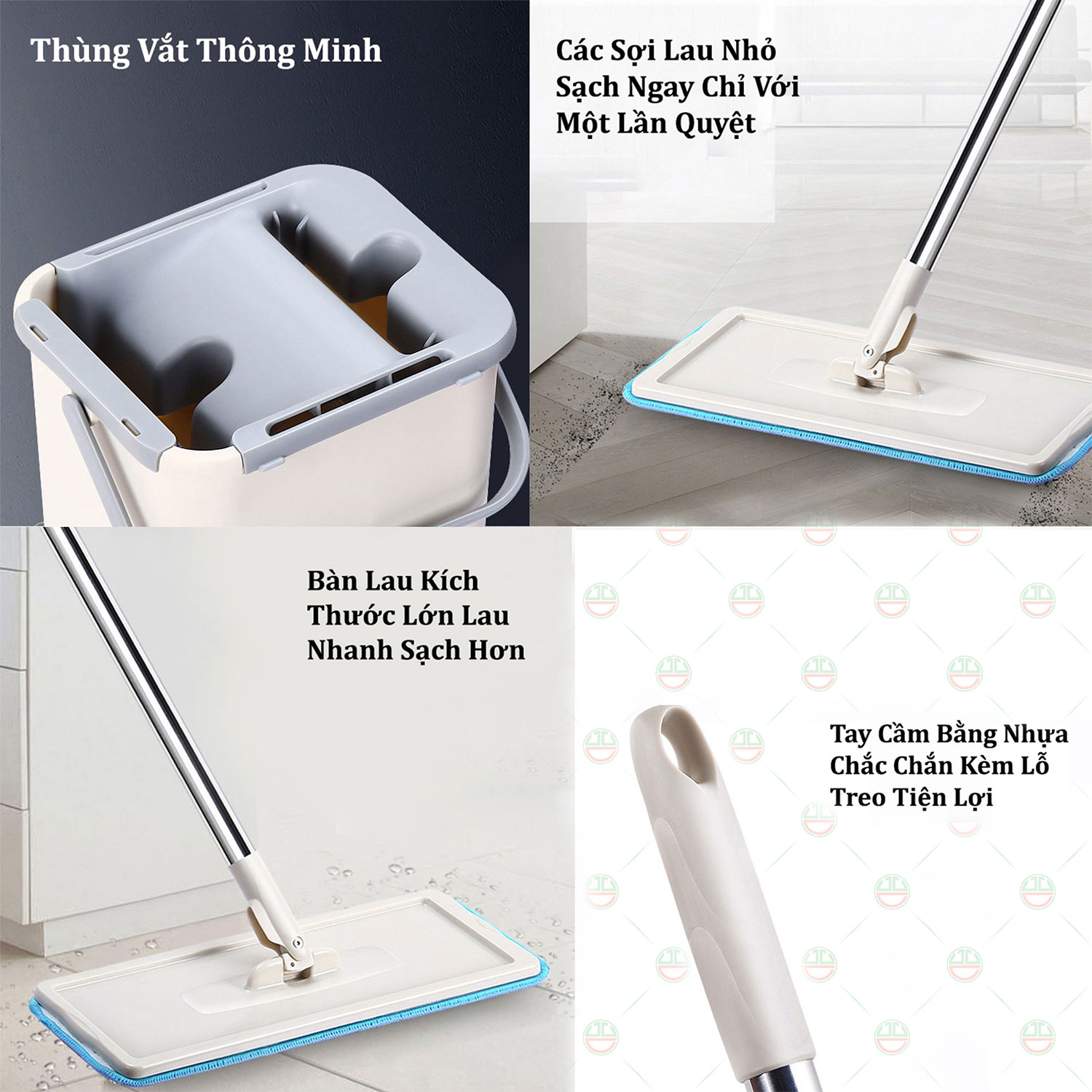 Đặc điểm sản phẩm bộ cây lau nhà thông minh kèm thùng vắt 2 ngăn :