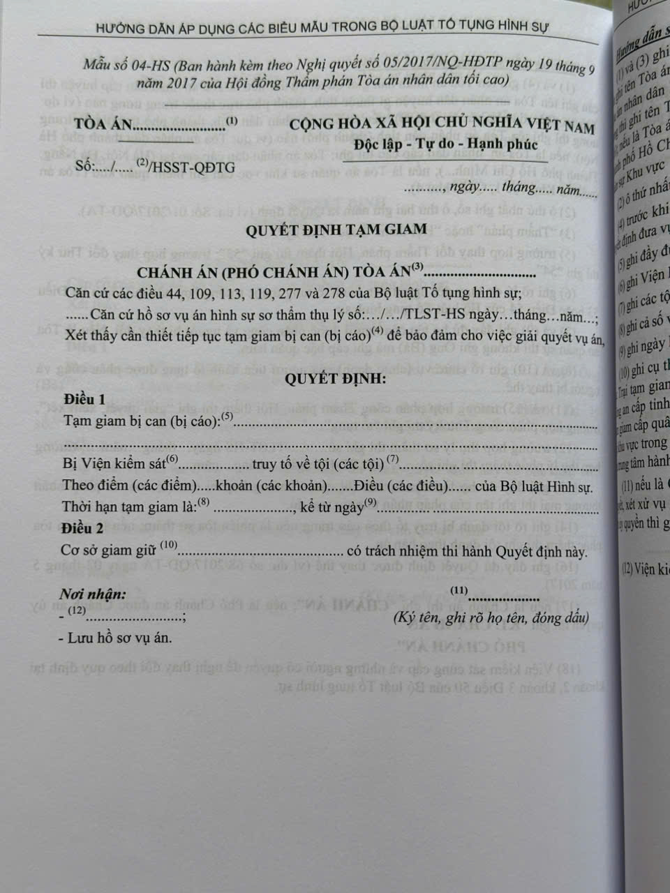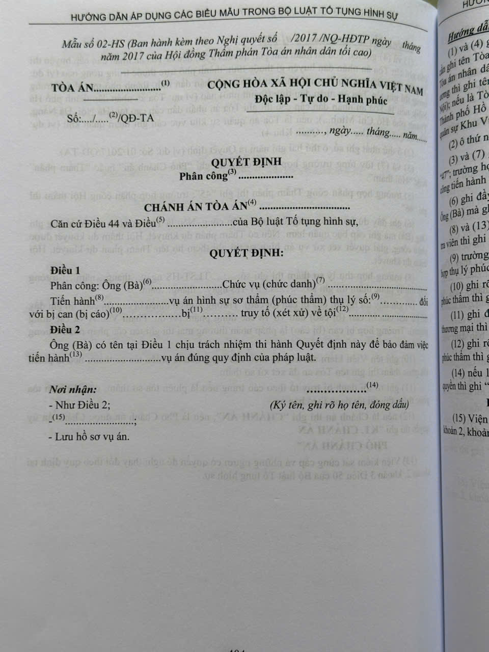 Phần II. Hướng dẫn áp dụng các biểu mẫu trong Bộ luật Tố tụng hình sự