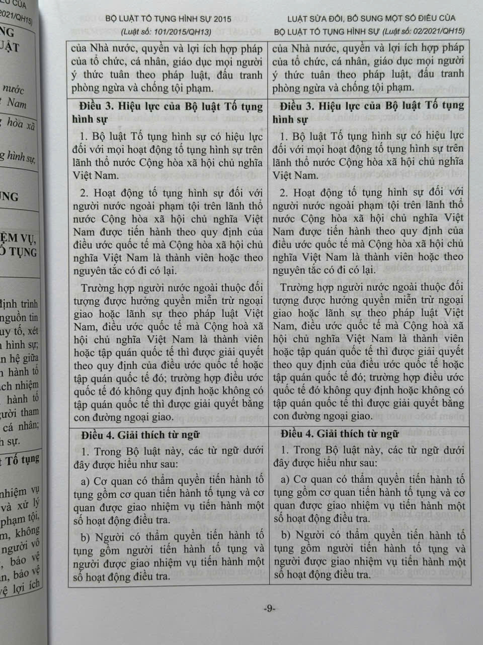 Phần I. So sánh đối chiếu Bộ luật Tố tụng hình sự 2015 – 2021