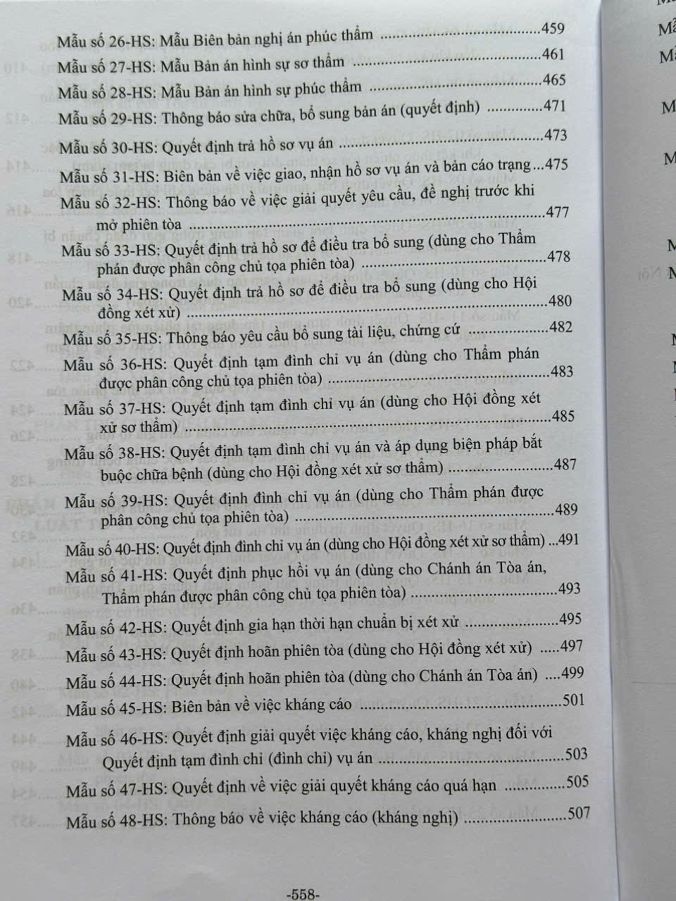 Ngoài ra cuốn sách còn in các biểu mẫu trong Bộ luật Tố tụng hình sự để bạn đọc thuận tiện hơn trong việc tham khảo và áp dụng.