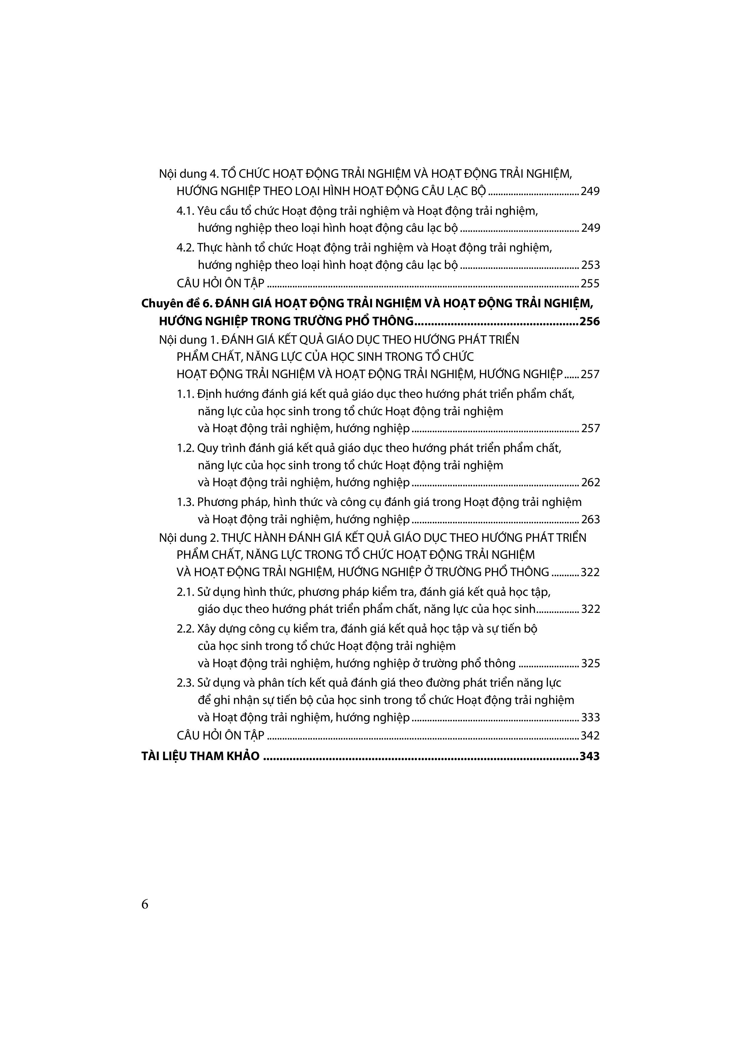 Hoạt động trải nghiệm và Hoạt động trải nghiệm, hướng nghiệp góp phần hình thành, phát triển các phẩm chất chủ yếu, năng lực chung và các năng lực đặc thù cho học sinh. Các nội dung hoạt động được xây dựng dựa trên các mối quan hệ của cá nhân học sinh với bản thân, với xã hội, với tự nhiên và với nghề nghiệp.