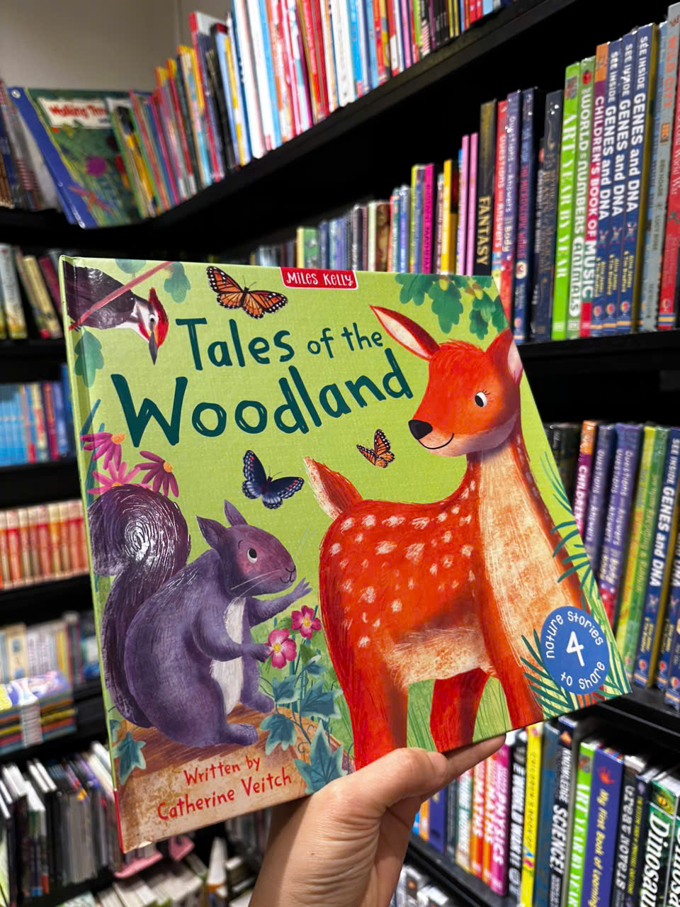 Follow the adventures of adorable animals in their natural wood land habitats . This beautiful story collection by Catherine Veitch tells the stories of four woodland animals from around the world. Children will be captivated by a deer who loves solving mysteries, a proud butterfly who starts to make friends, a mischievous shrew, and a jay who learns to share with others. Each story unfolds through a wonderful backdrop of artwork, packed with charming detail, and explores themes that children can relate to. Beautiful artwork scenes. A dedicated artwork style per story. Thicker paper pages for little hands to turn more easily.