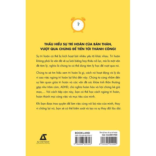 Trong cuốn sách này, chúng ta sẽ cùng tìm hiểu xem trì hoãn là gì, cách nó hoạt động và lý do vì sao việc ngừng trì hoãn lại khó đến vậy. Chúng ta cũng nhắm đến sự liên quan giữa trì hoãn và các vấn đề sức khỏe tinh thần thường gặp như trầm cảm, ADHD, chủ nghĩa hoàn hảo và hội chứng kẻ giả mạo,… Với cách tiếp cận này, bạn có thể học cách ngừng trì hoãn, hoàn thành mọi công việc và mục tiêu của mình.