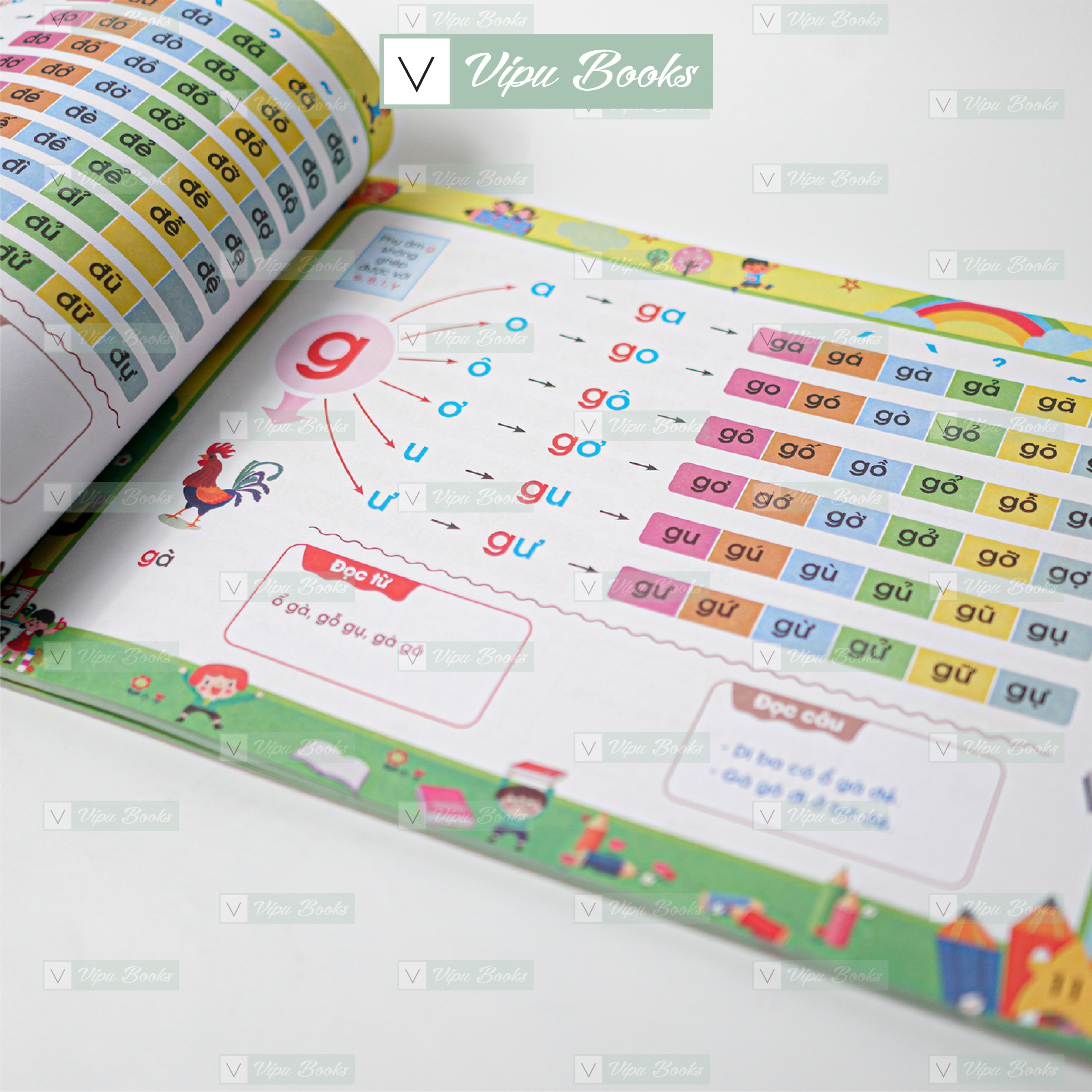 Cuốn Sách Đánh Vần Tiếng Việt với 124 trang cùng đầy đủ nội dung chữ cái cùng bộ học vần theo chương trình mới nhất bài học giới thiệu bảng chữ cái Tiếng Việt, dấu thanh và vần Tiếng Việt giúp các bé bước đầu làm quen với chữ viết và cách đánh vần Tiếng Việt. Mỗi bài học gồm các từ vựng, câu, đa dạng, bé tha hồ tập đánh vần, tập đọc mà không bị nhàm chán. Đặc biệt, các chữ in mầu, vẽ sơ đồ cầu trúc từ đơn giản đến phức tạp cực kỳ đễ hiểu và logic cùng màu sắc tươi tắn khiến cho việc học trở nên thú vị hơn.